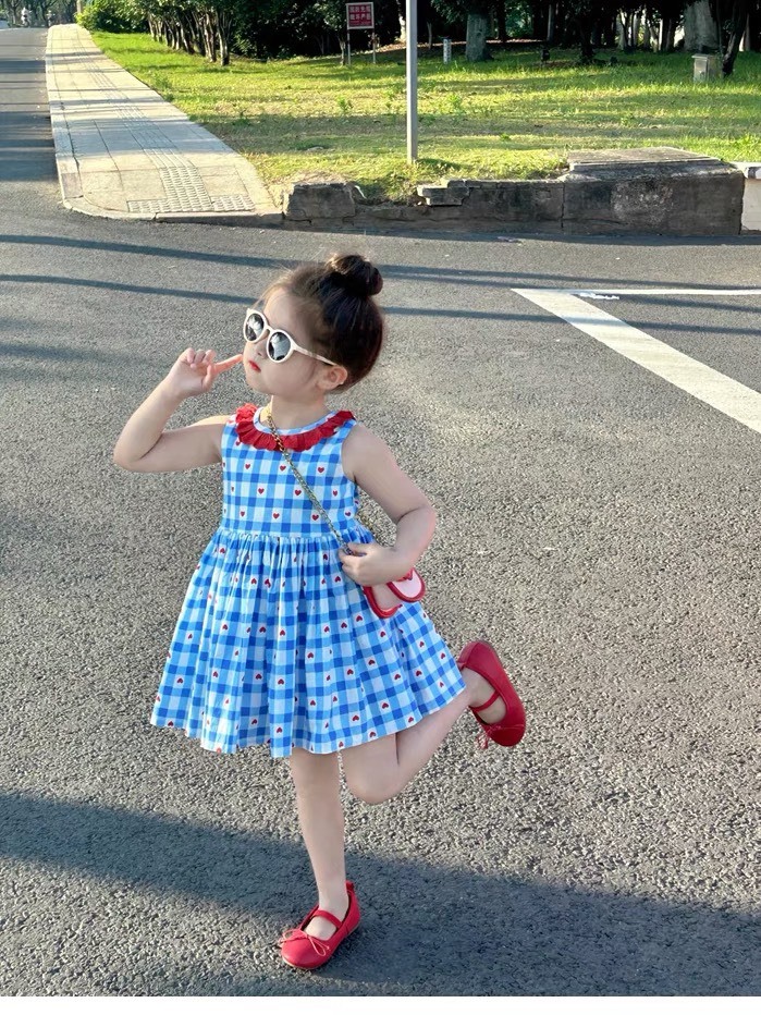 Váy bé gái - váy 2 dây kẻ xanh cho bé gái dễ thương ( size 8-20kg )