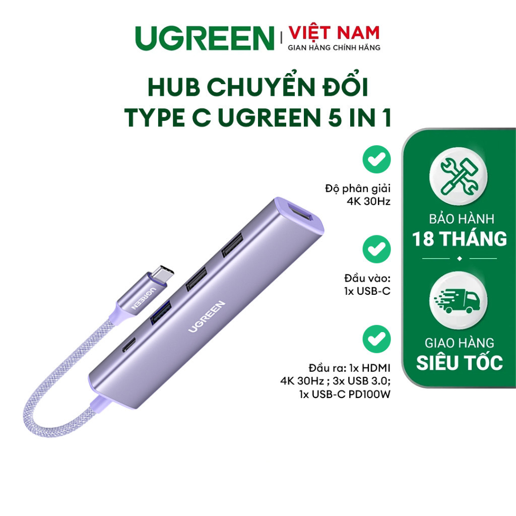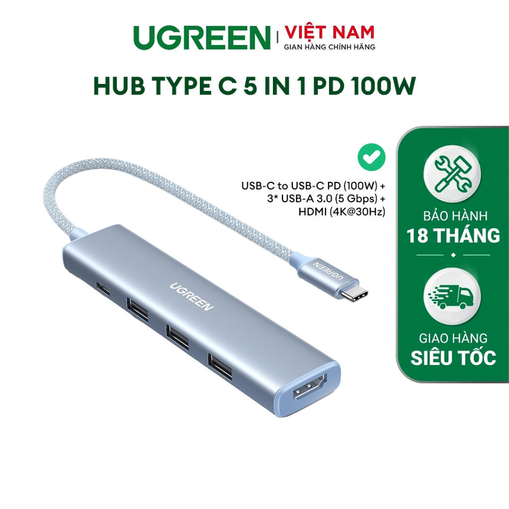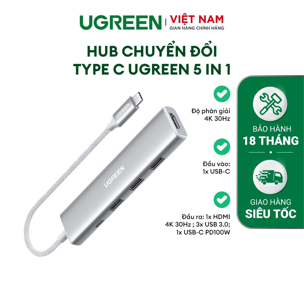Hub chuyển đổi Type C Ugreen 5 in 1 | Vỏ nhôm cao cấp | Truyền tải nhanh chóng | Bảo Hành 18 Tháng 1 đổi 1 | 15596 15597