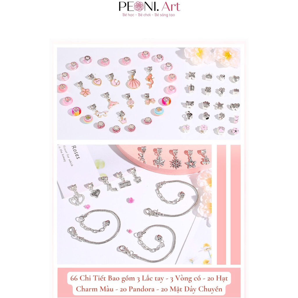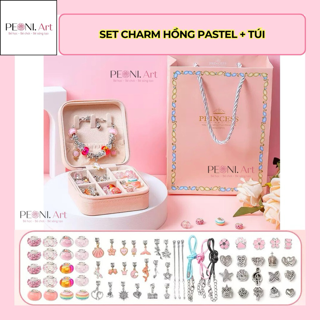 Bộ Charm 66 Chi Tiết Vòng Tay Tự Làm Cho Bé, Đồ Chơi Xâu Vòng, Trang Sức Cho Bé Kèm Hộp Nhung + Túi