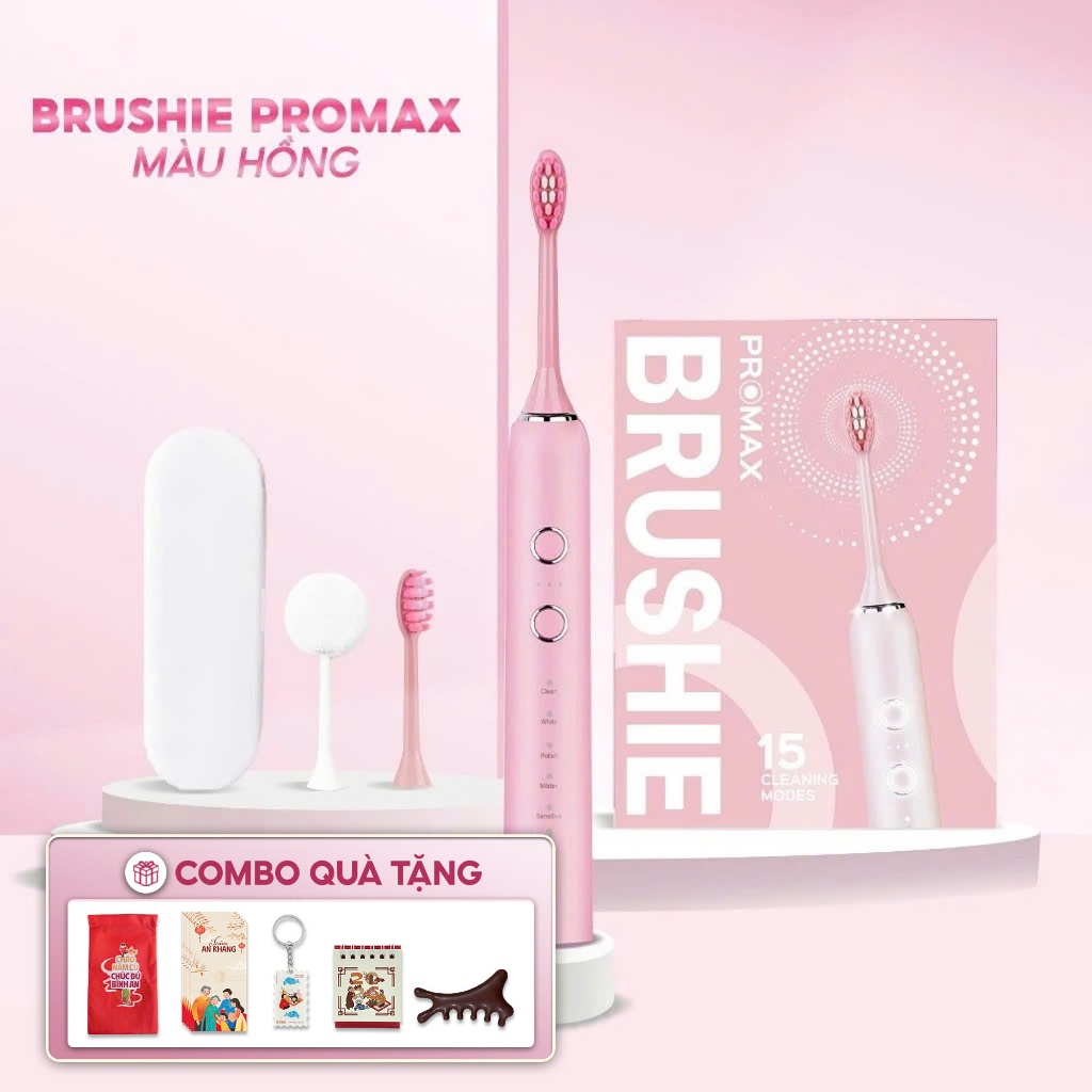 [SĂN 679K LIVE SHOP] Bàn Chải Điện Brushie Promax 15 Chế Độ Làm Sạch, Set Quà Tặng Cho Nữ, Quà Sinh Nhật Người Yêu LIS
