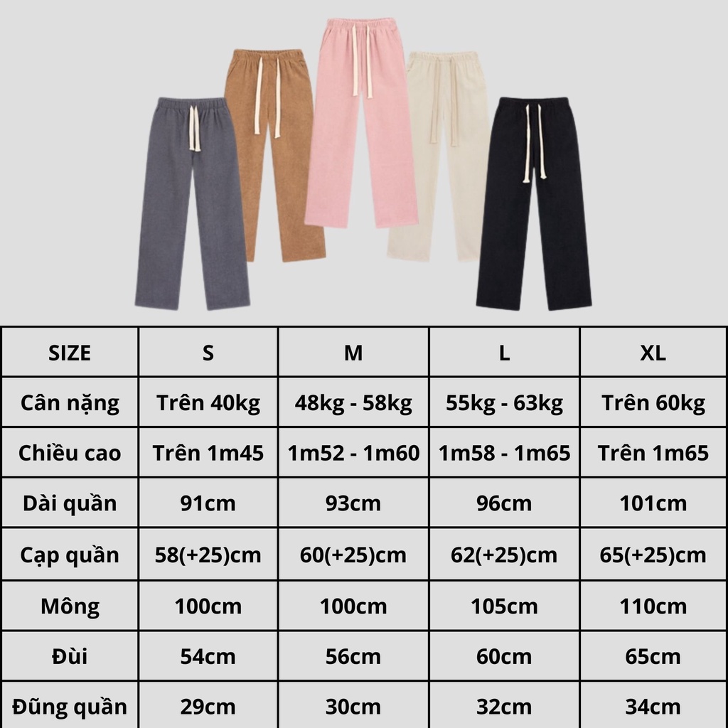 Quần Nhung Tăm Ống Rộng Nam Nữ, Quần Nhung tăm dây rút unisex 5 mầu Zinti QD30