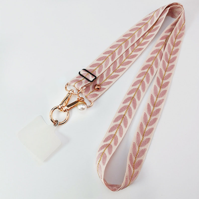 Dây đeo vai điện thoại có thể điều chỉnh dài: Dây đeo chéo vải rộng có dây đeo ngọc trai & chức năng móc khóa điện thoại di động