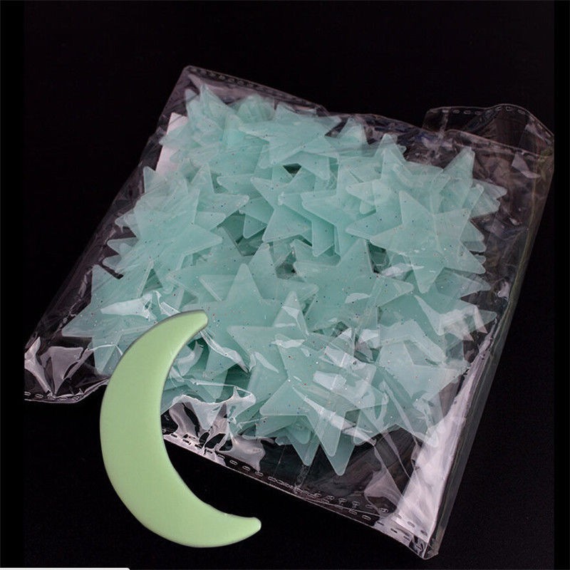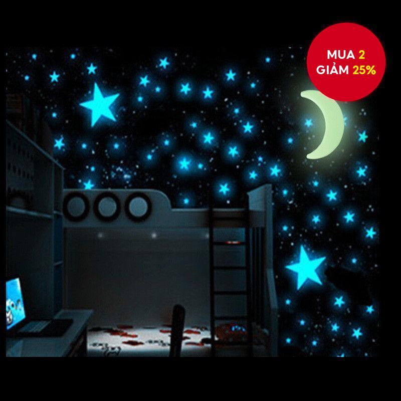 Nhãn dán tường 3D phát sáng 100 ngôi sao và 1 mặt trăng phát sáng trong bóng tối Trang trí nghệ thuật ban đêm