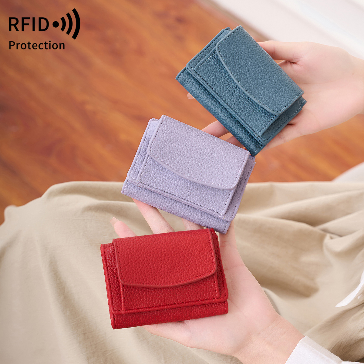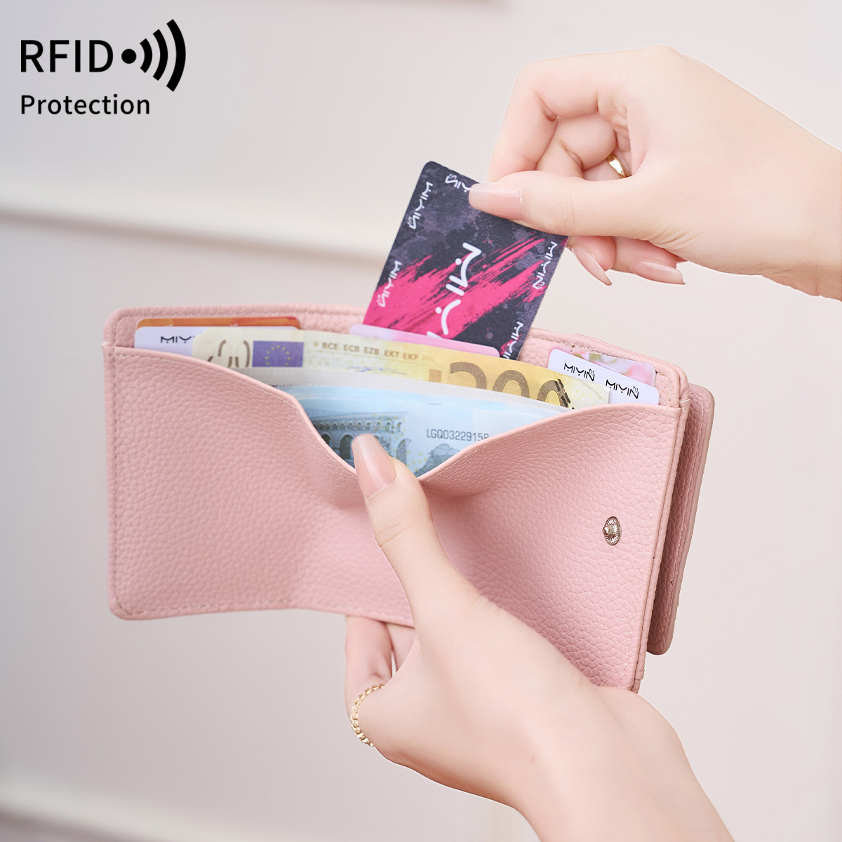 Ví mini nhỏ dễ thương cho phụ nữ, có chức năng chắn RFID, ví gập ba đa năng tối giản, ví đựng tiền xu cho nữ, túi đựng thẻ thời trang và nhỏ gọn.