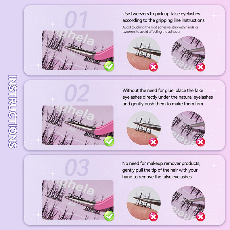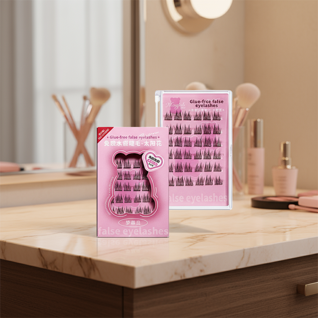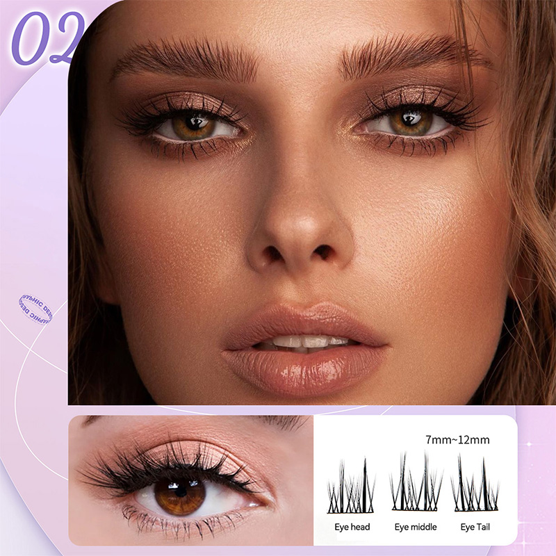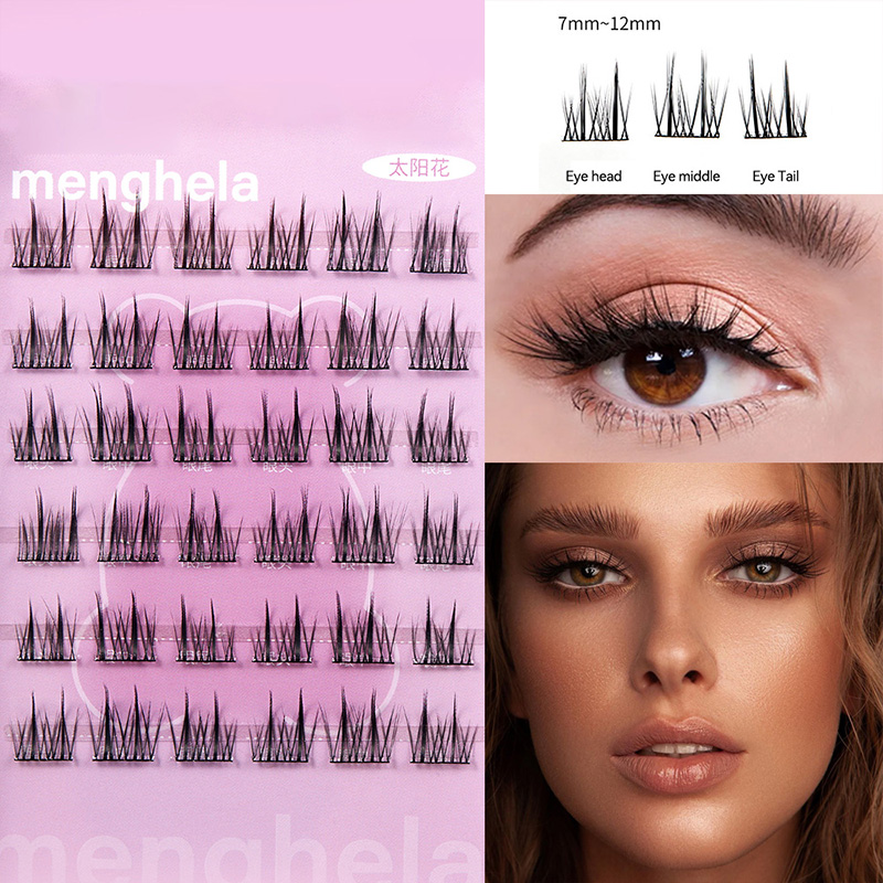 Dễ dàng dán mi không keo, hiệu ứng hoa hướng dương mong muốn thuần khiết, phù hợp cho người mới sử dụng, mi nữ phân đoạn dễ tháo rời.