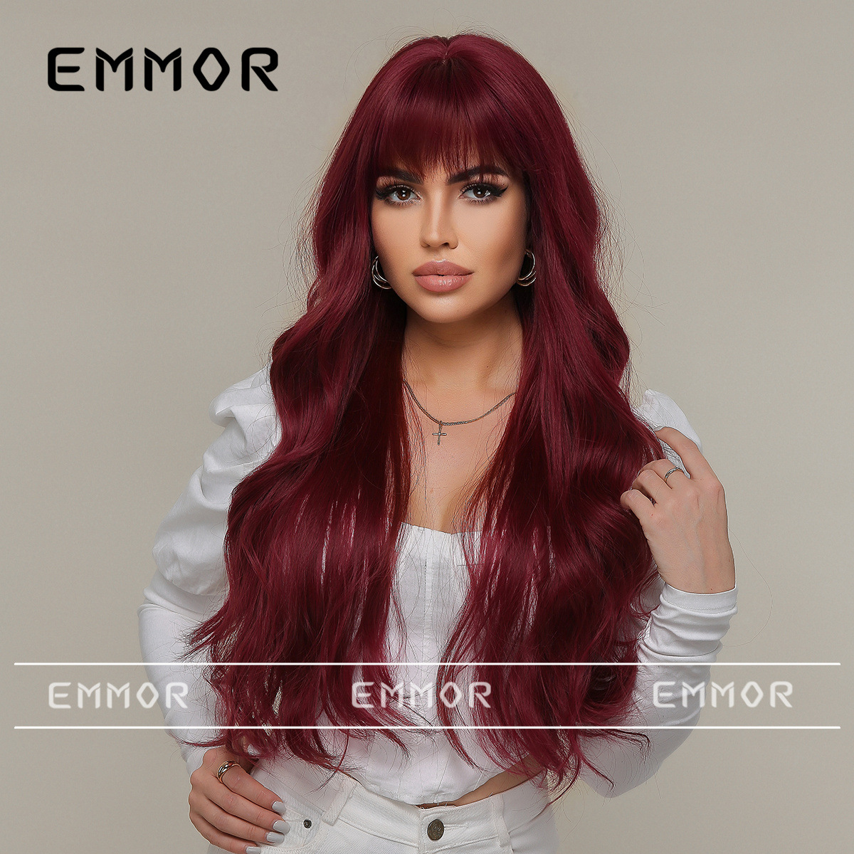 Tóc giả nguyên đầu nữ, tóc xoăn dài màu nâu với mái, phong cách Âu Mỹ.