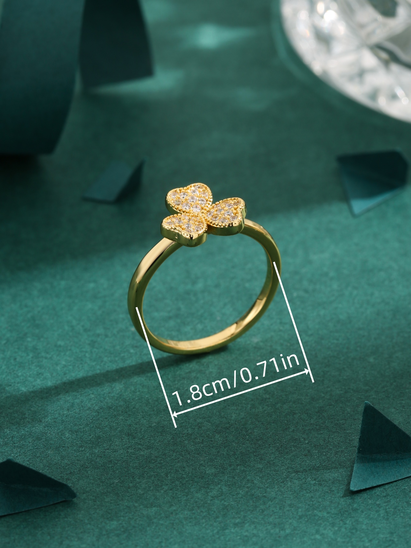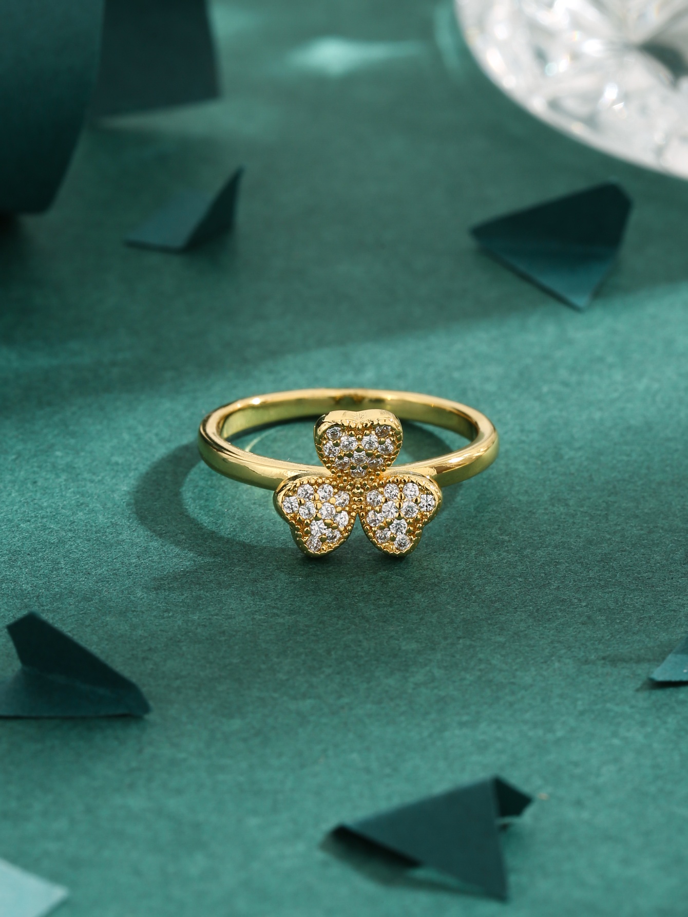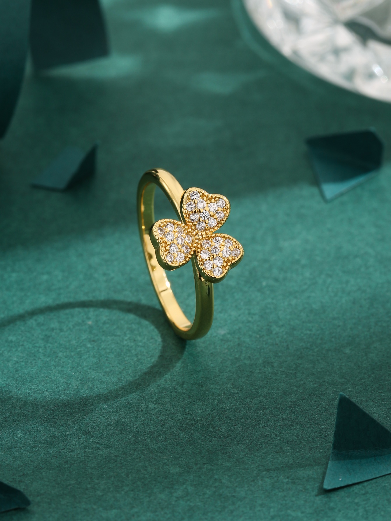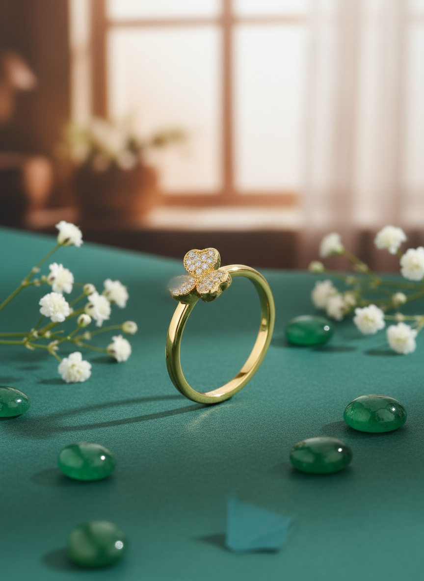 Nhẫn cỏ bốn lá mạ vàng 18K cao cấp, đính đá Zirconia, thanh lịch và thời trang, lý tưởng để đeo hàng ngày.