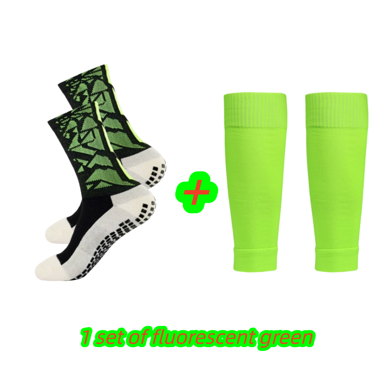 Bộ tất bóng đá 2 mảnh dành cho nam | Tất giữa bắp chân đế Terry chống trượt + tay áo nén | Thuốc tập chống ẩm & chống mùi (Xanh / Đỏ)