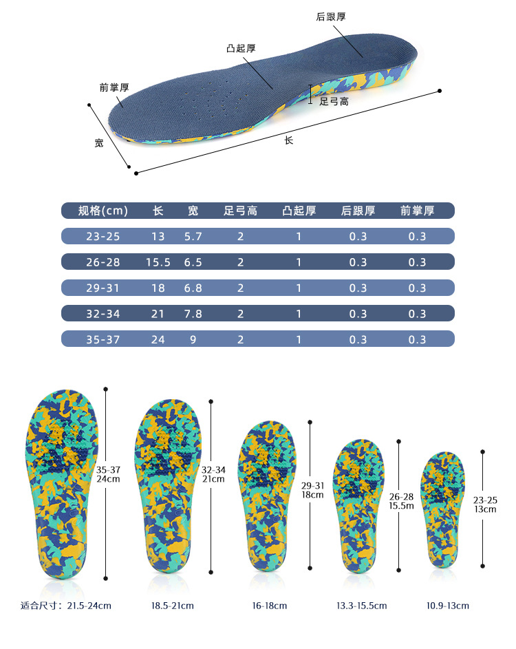 Lót giày vòm ngụy trang cho trẻ em | Miếng lót chỉnh bàn chân bẹt & ngón chân cho trẻ | Hỗ trợ & thoải mái cho sử dụng thể thao