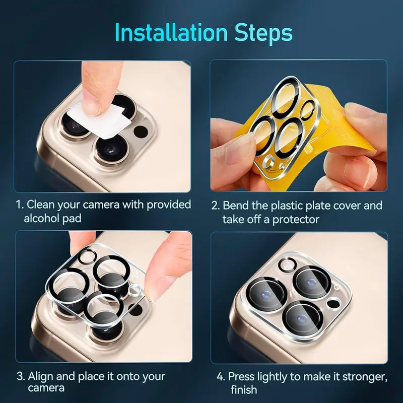 Kính cường lực chống xước 9H bảo vệ camera sau cho iPhone 11 12 13 14 15 16 17 Pro Max