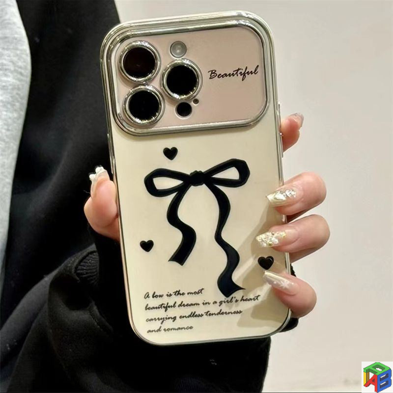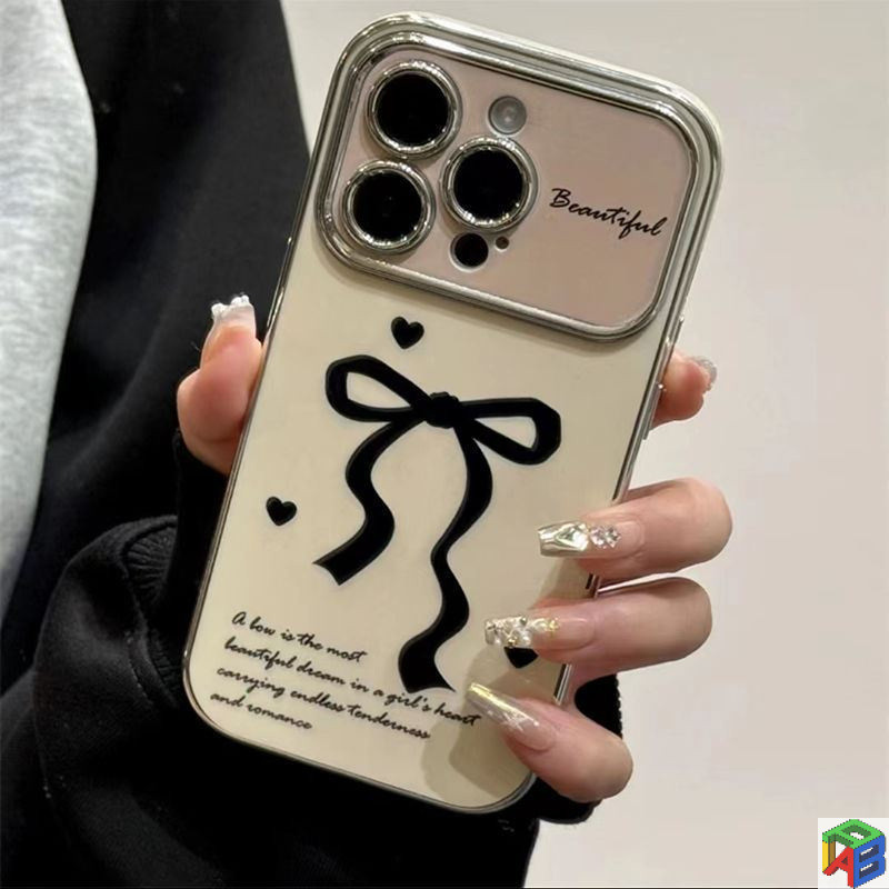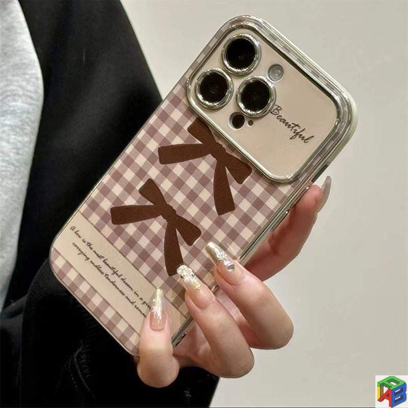 Nơ tình yêu kẻ sọc cho Apple 15 / 16 / 17promax 14plus 11 / 12 / 13 Pro Max 7 / 8 Plus Xsmax Vỏ bảo vệ toàn bộ chống rơi mạ điện cao cấp