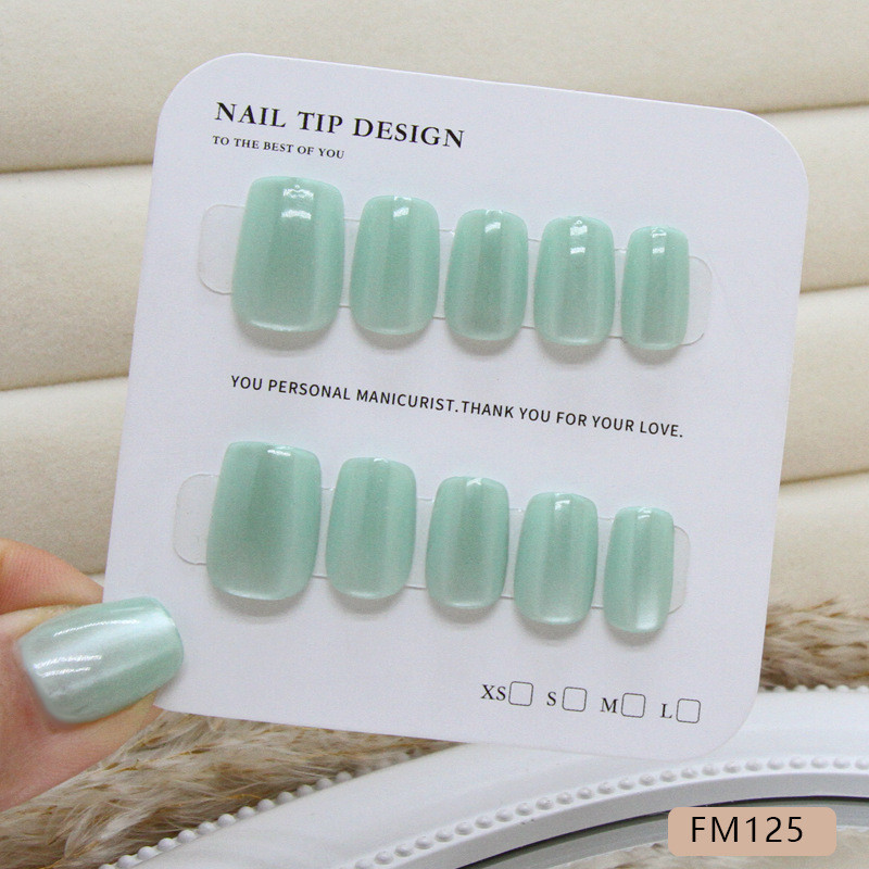 Làm mới bạc hà xanh nhạt mắt mèo màu xanh lá cây màu trơn tối giản nghệ thuật làm móng tay-FM125