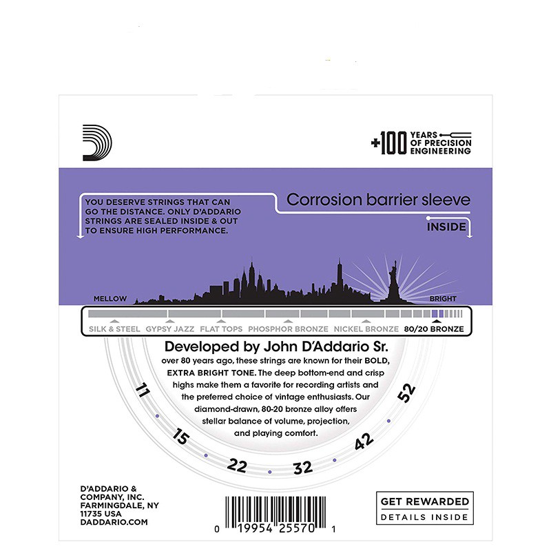 Bộ dây đàn guitar thùng D’Addario EJ13 kích cỡ (11-52)