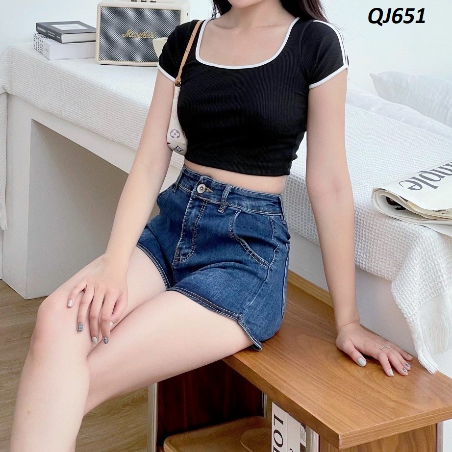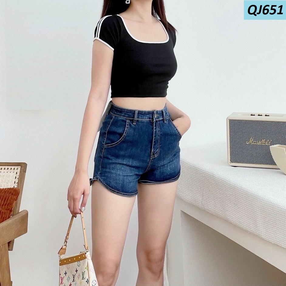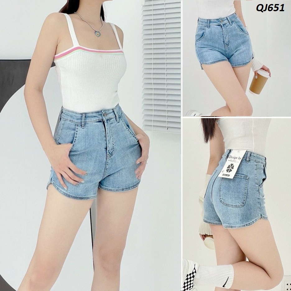 Quần Đùi Jeans Lưng Siêu Cao Co Giãn Ôm Dáng QJ651