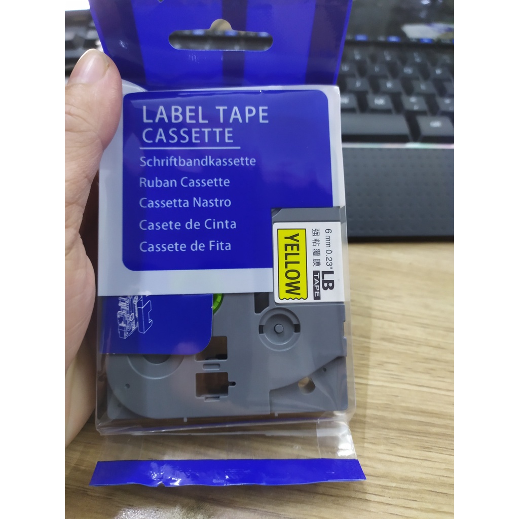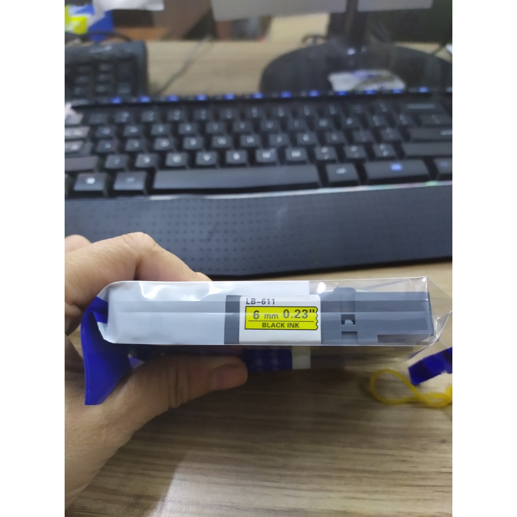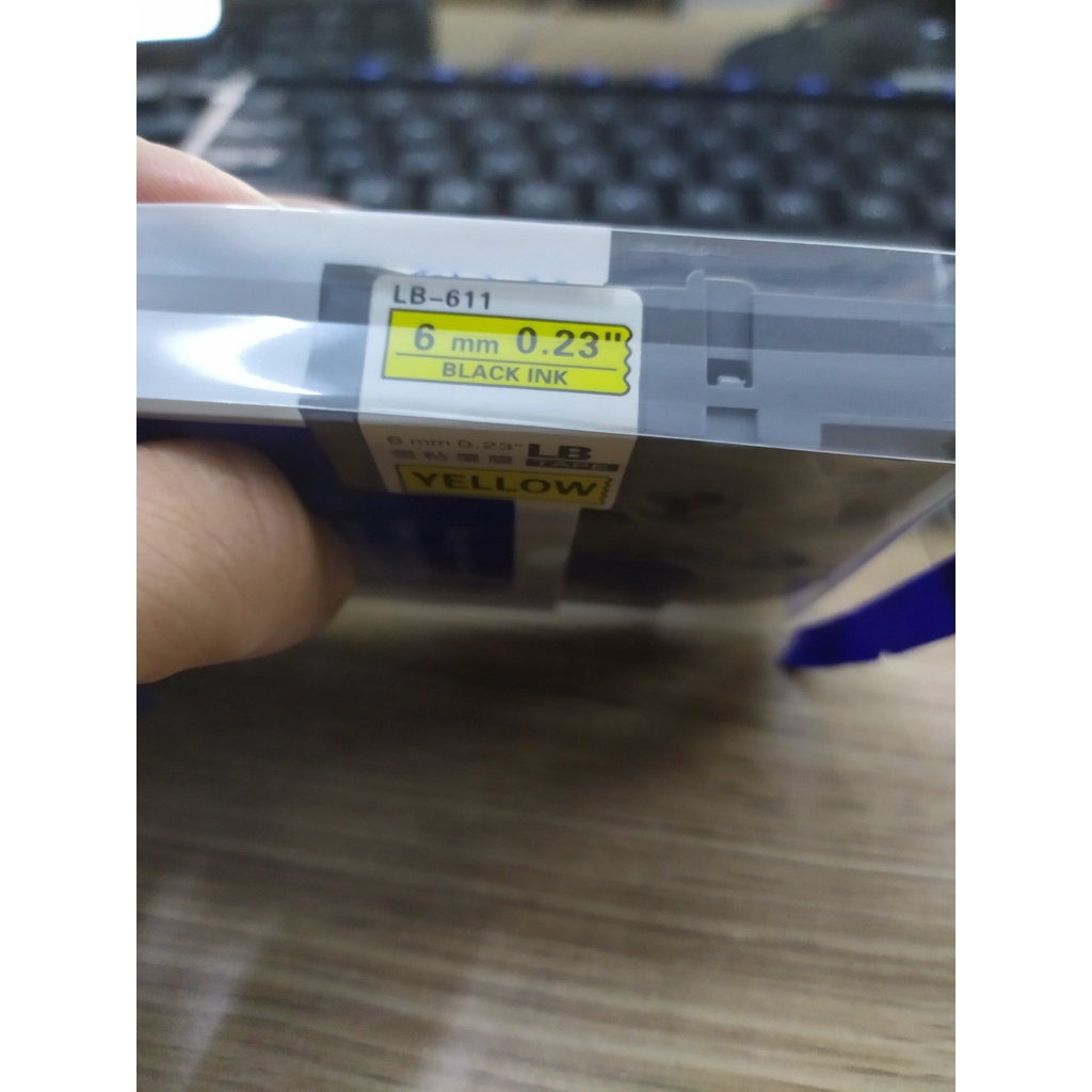 Băng nhãn in LB-611 khổ 6mm*8m( chữ đen nền vàng) dành cho máy Brother Ptouch (PT) E110, E300