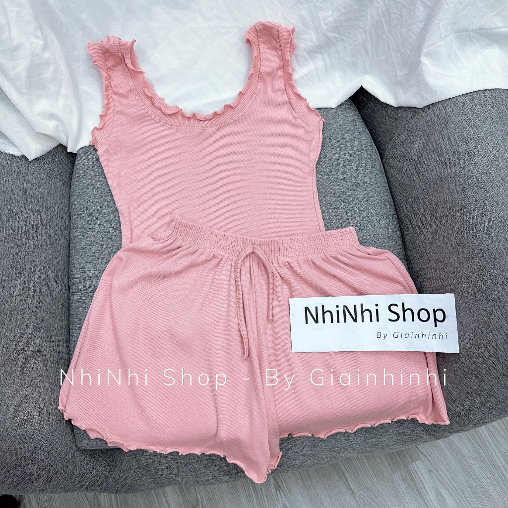 Sét đồ ngủ áo ba lỗ sexxy vải thun tăm co giãn, Bộ ngủ viền bèo BN0086 - NhiNhi Shop