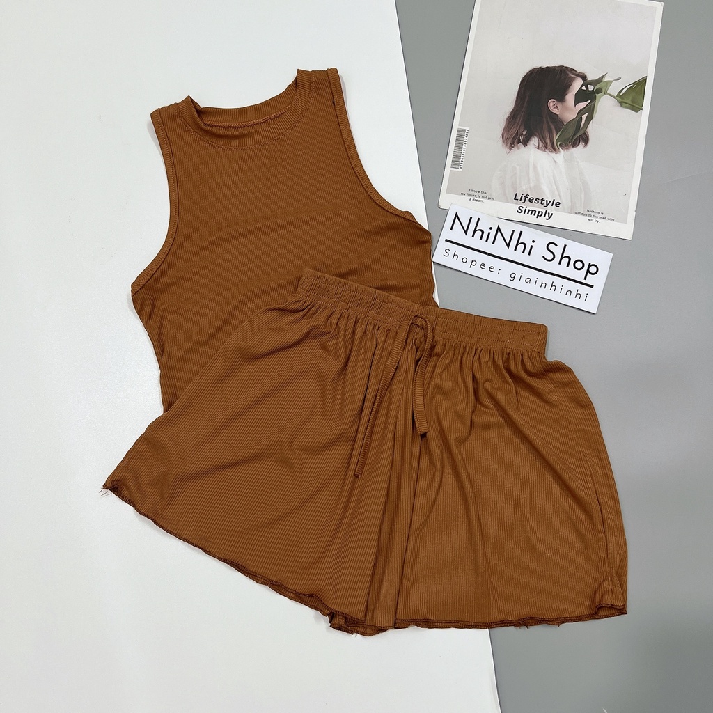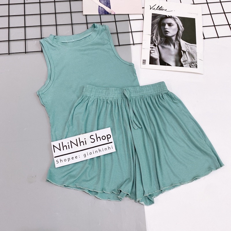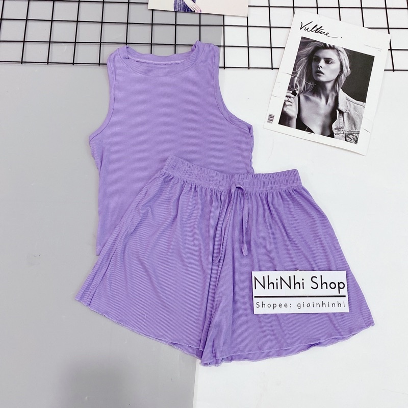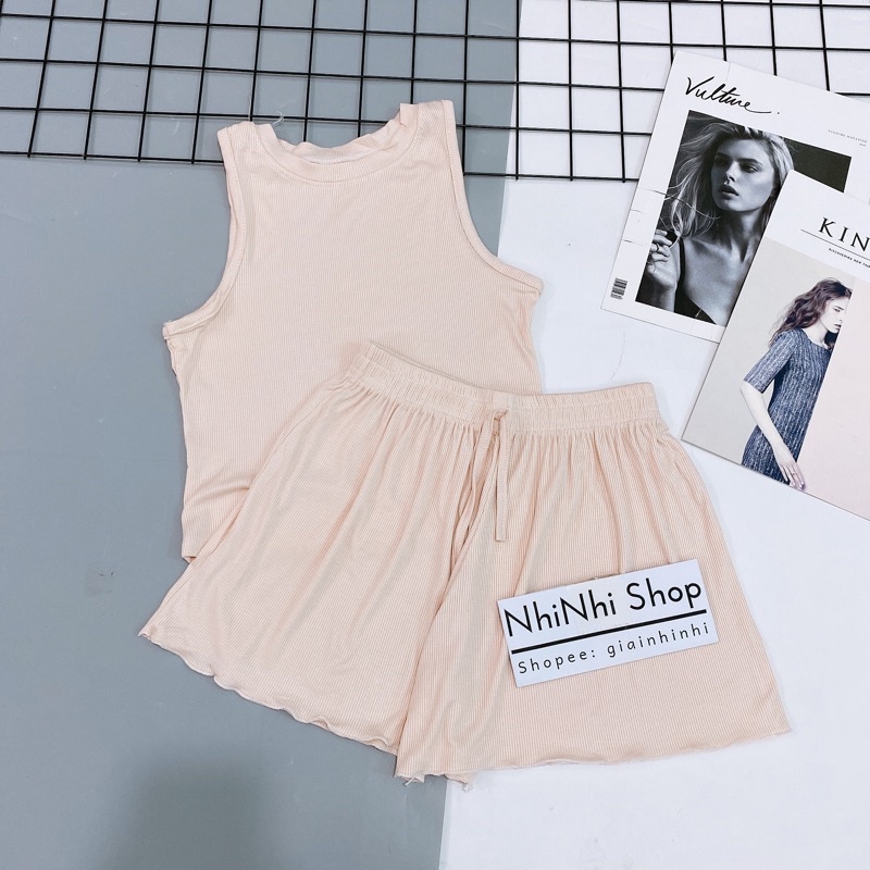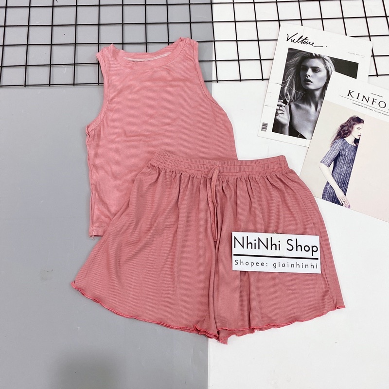 Sét đồ ngủ quần short thun mix áo ba lỗ, Bộ ngủ sexxy co giãn chất mát lạnh BN0089 - NhiNhi Shop