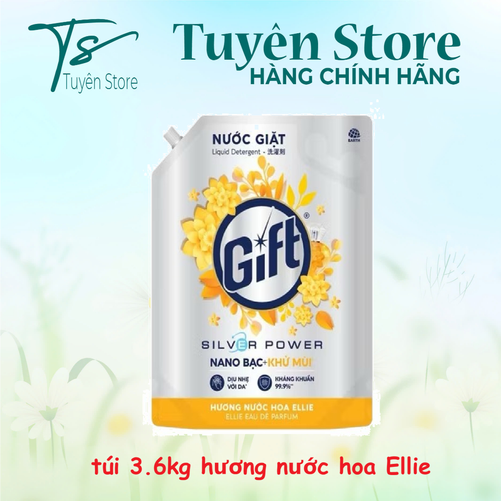 Nước Giặt Gift Túi 3.6kg - Công Nghệ Nano Bạc Khử Mùi Dịu Nhẹ Với Da