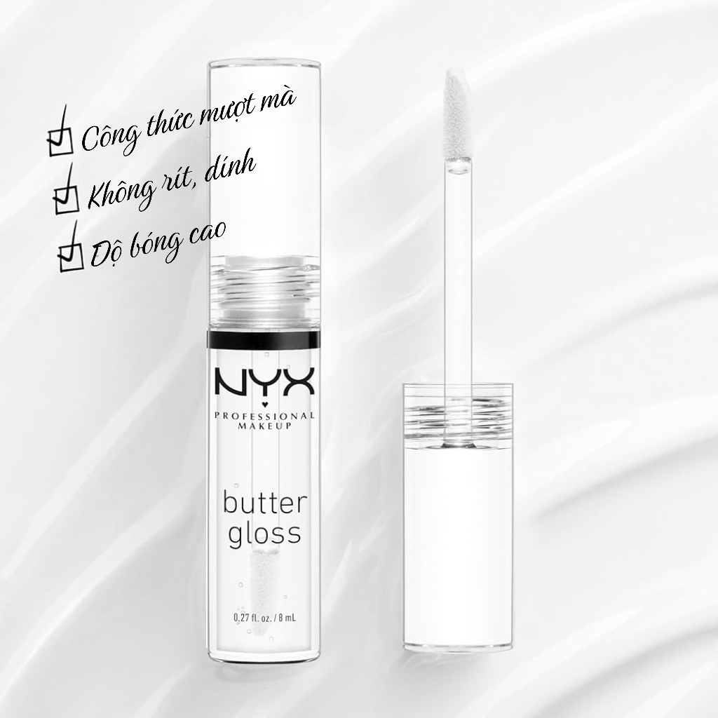 Son bóng NYX Butter Gloss không màu trong veo cho đôi môi căng tràn thu hút