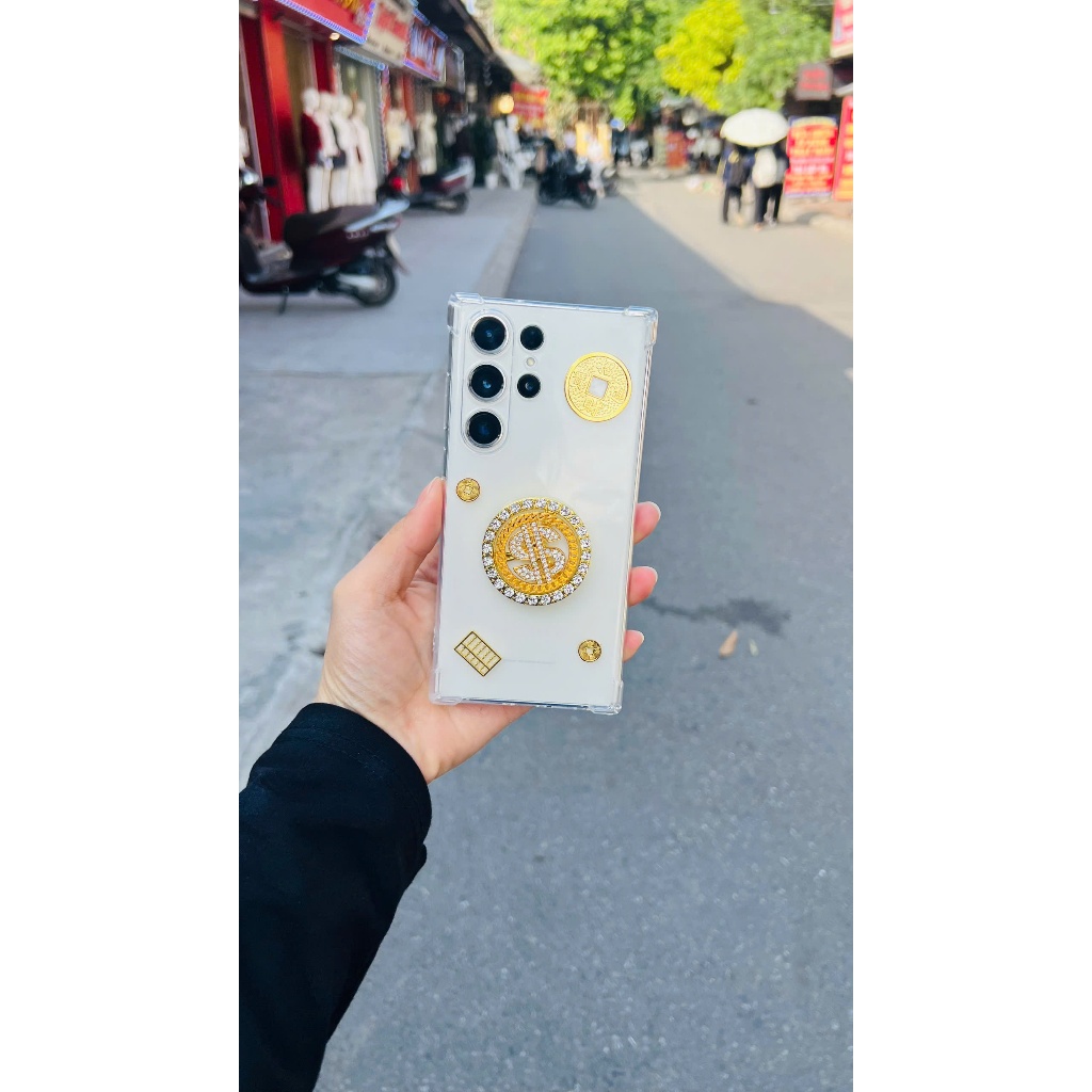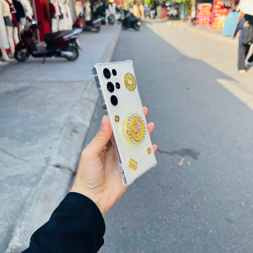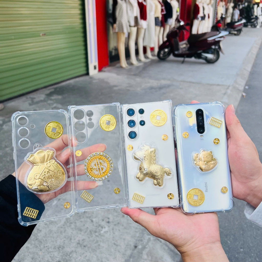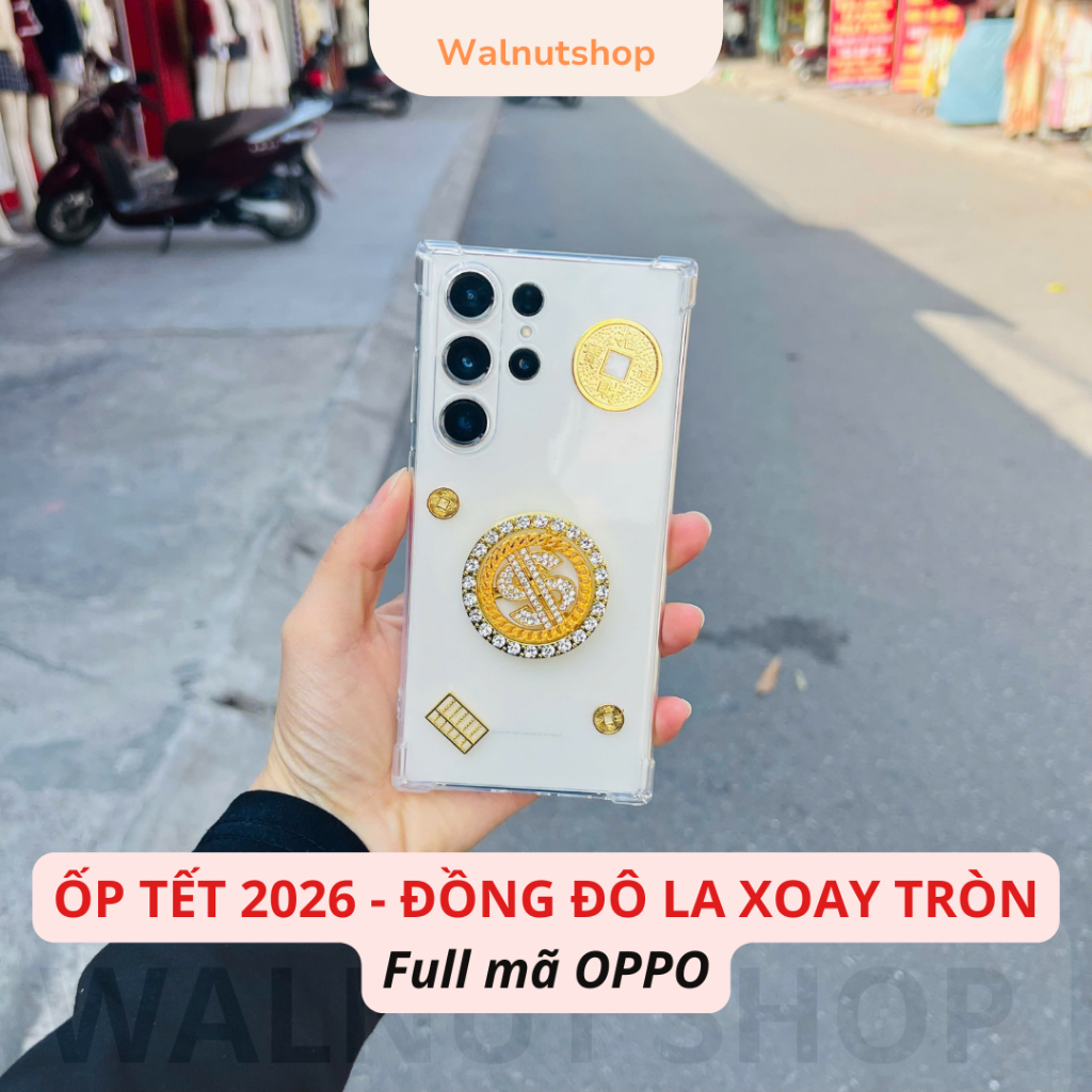 Ốp Lưng Tết đồng đô la đính đá xoay tròn full mã OPPO – Silicon Trong Chống Sốc, Hình Vàng May Mắn