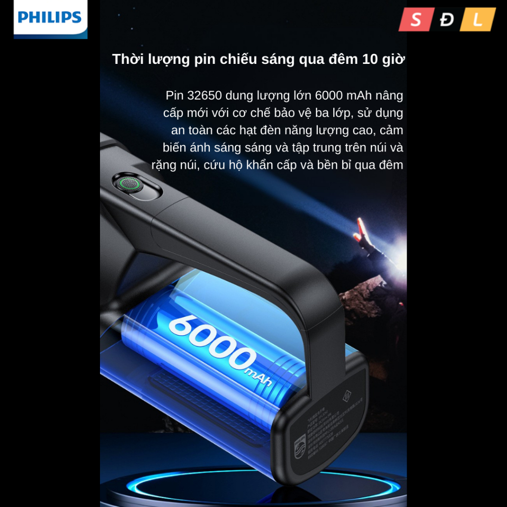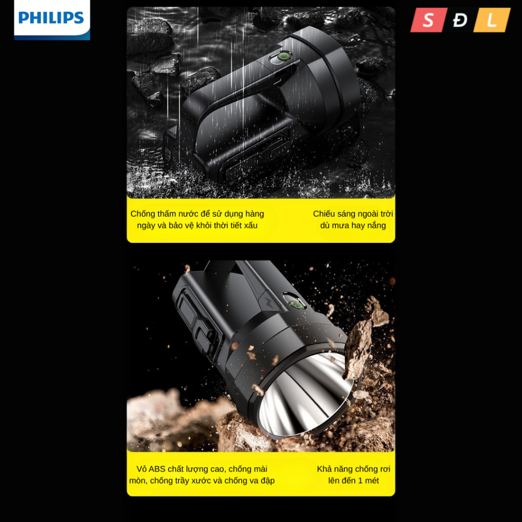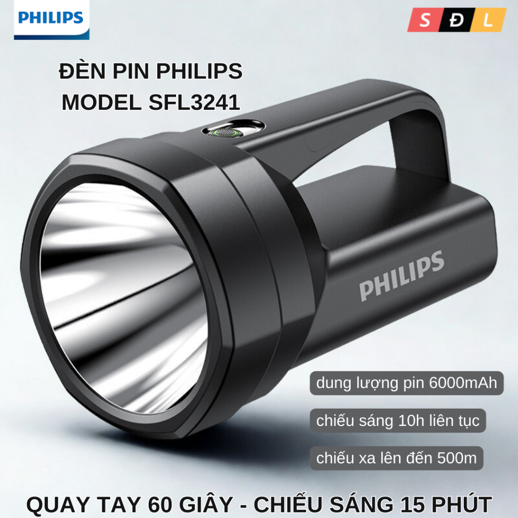 Đèn pin Philips SFL3241 quay tay chiếu sáng không giới hạn