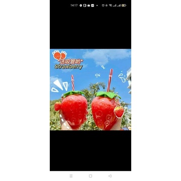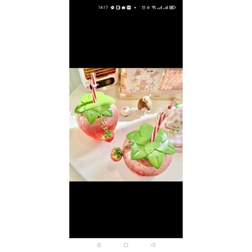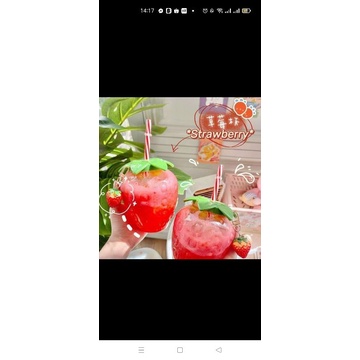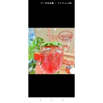 Bình nước Dâu Tây (Tặng kèm móc và ống hút- 500m)