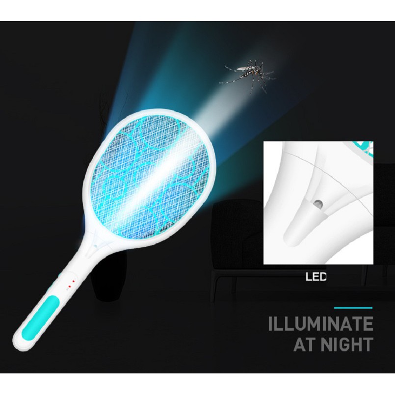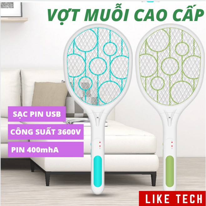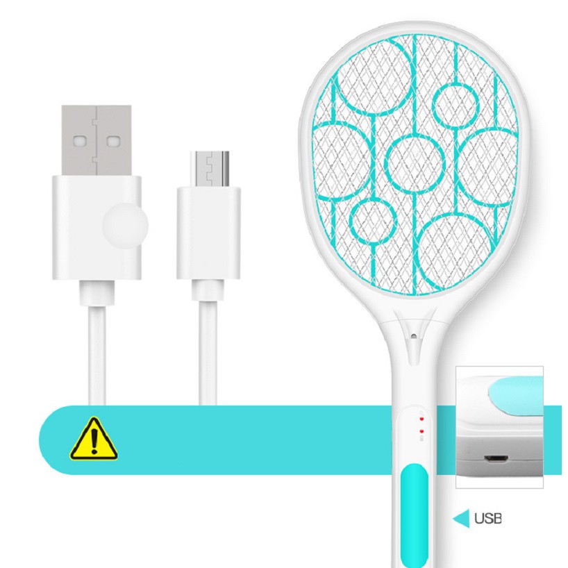 Vợt muỗi cao cấp sạc điện bằng cáp USB thông minh có đèn pin công suất 3000V