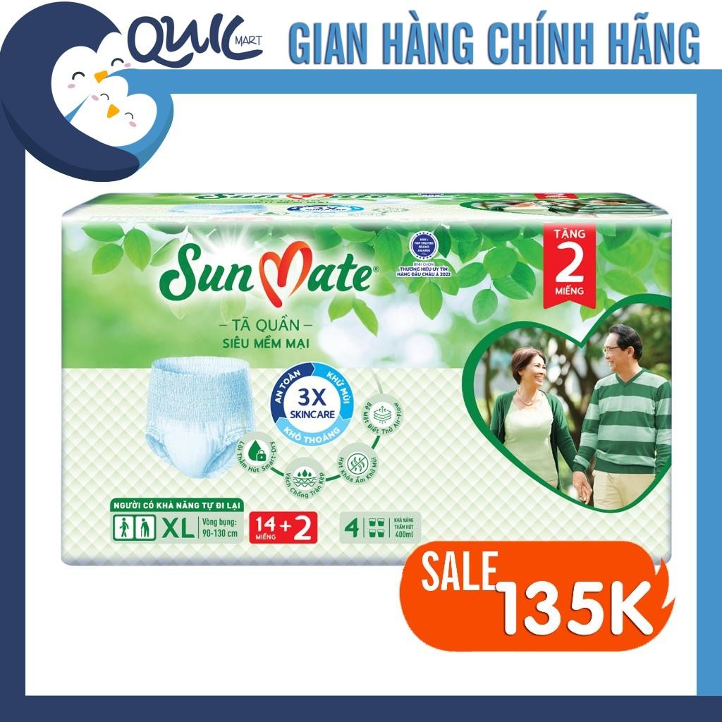 [TẶNG 2 MIẾNG] Tã bỉm quần Người già Sunmate gói lớn size M18/ L16/ XL14