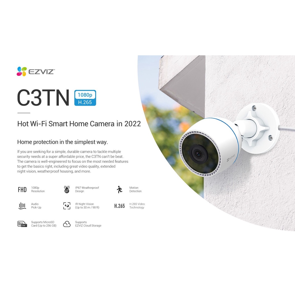 Camera wifi ngoài trời, chống nước ezviz C3TN, C3W Pro, H8C, C8W, C8PF - Hàng chính hãng