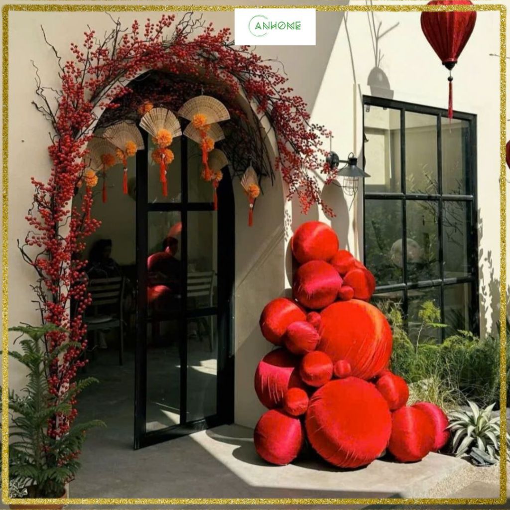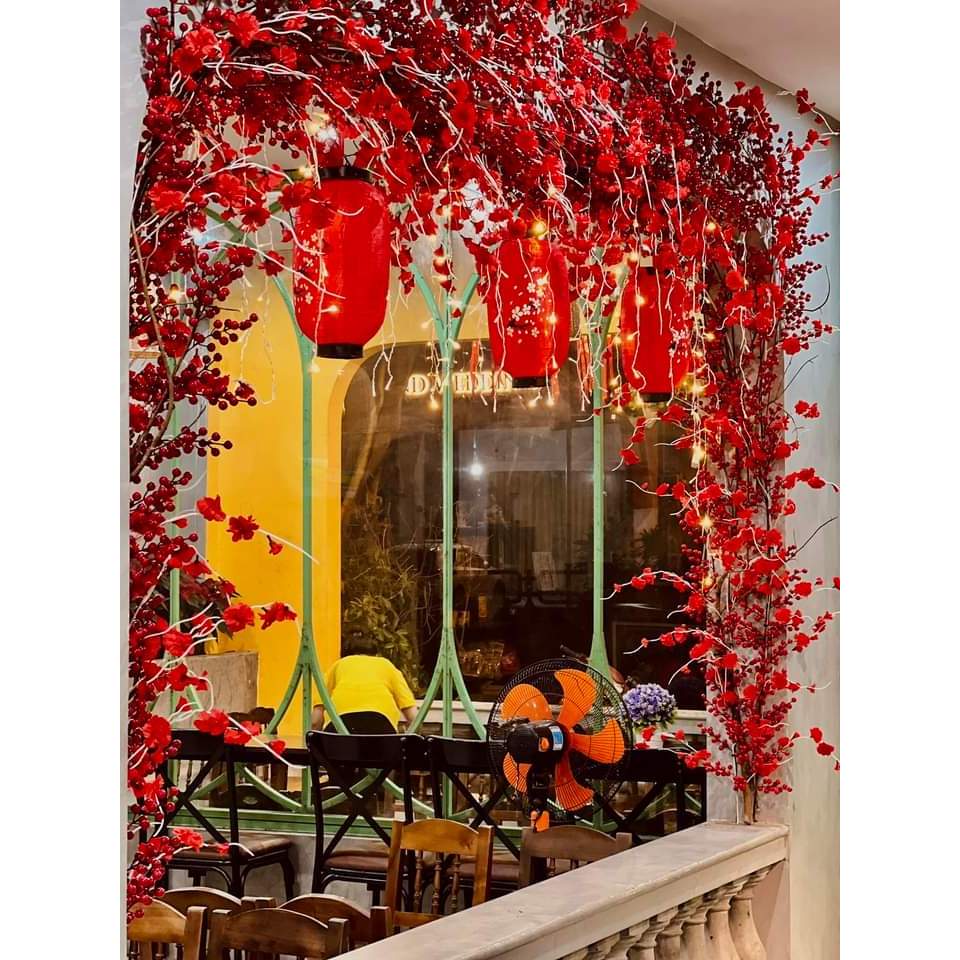 Combo Trang Trí Tết Với Cành Đào Đông, Hoa Đào Và Đèn Lồng Đỏ Decor Nhà, Quán Cà Phê, Cửa Hàng