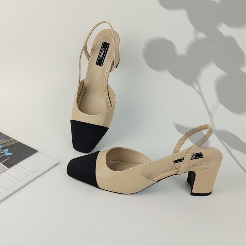 Giày sandal nữ đẹp mũi vuông phối nỉ gót 6cm dáng slingback Enako TP13452
