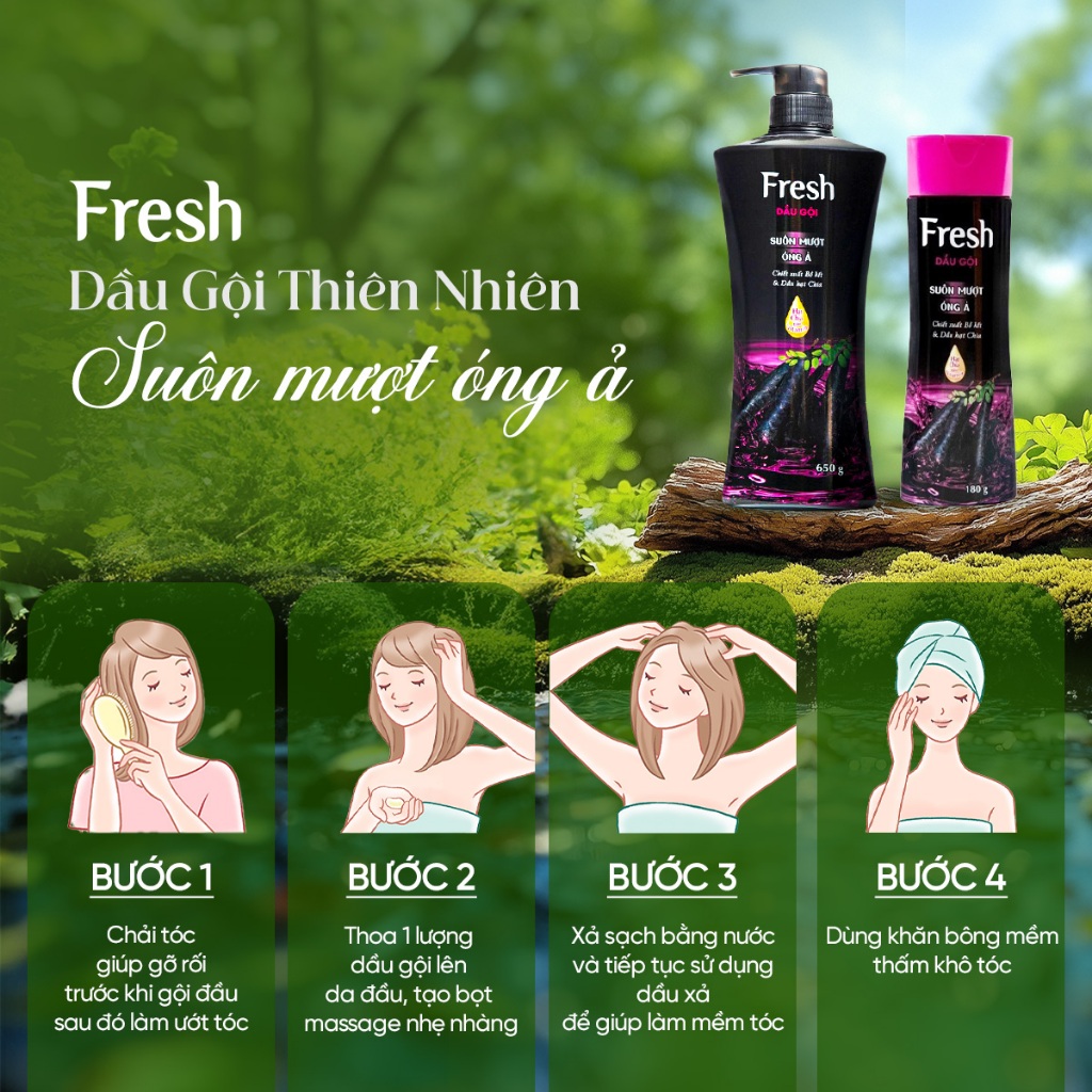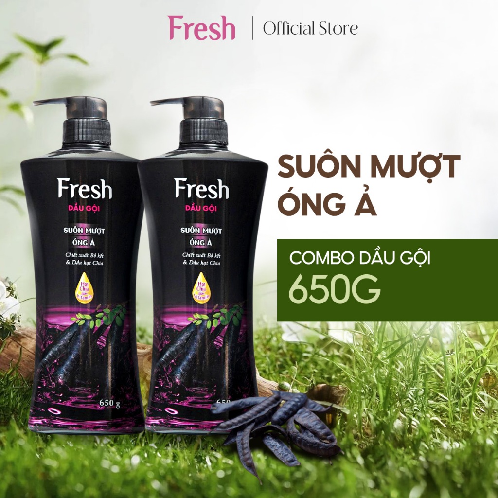 Combo 2 Chai Dầu Gội FRESH Thiên Nhiên Chiết Xuất Bồ Kết Suôn Mượt Óng Ả 650g/chai