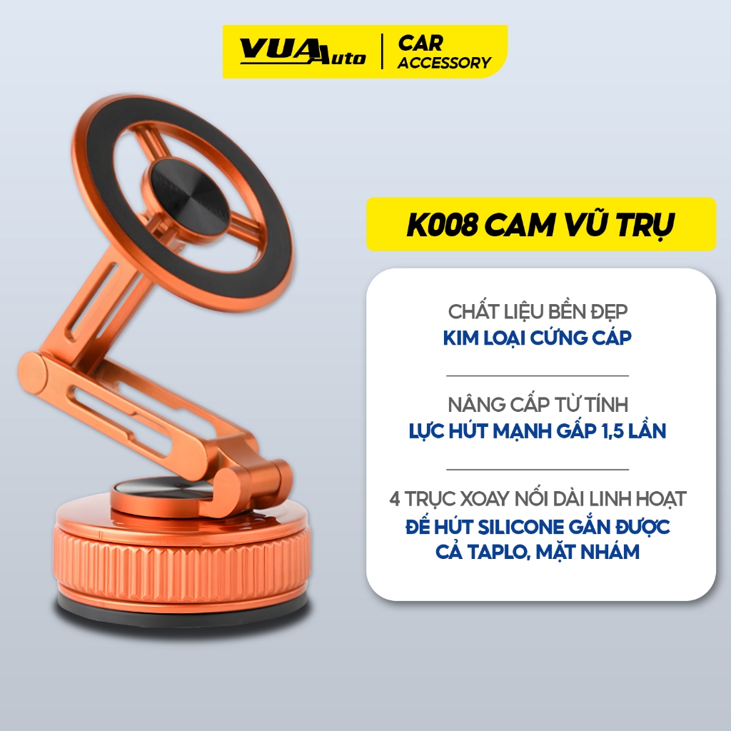 Giá đỡ điện thoại trên ô tô K007 VuaAuto nam châm từ tính hít chân không gắn kính, taplo siêu chắc chắn