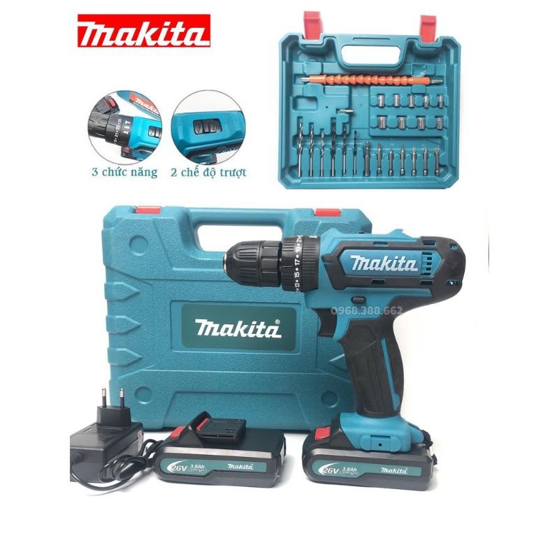 Máy Khoan Pin 26V Makita 3 Chức Năng, Bắn Vít-Khoan-Búa
