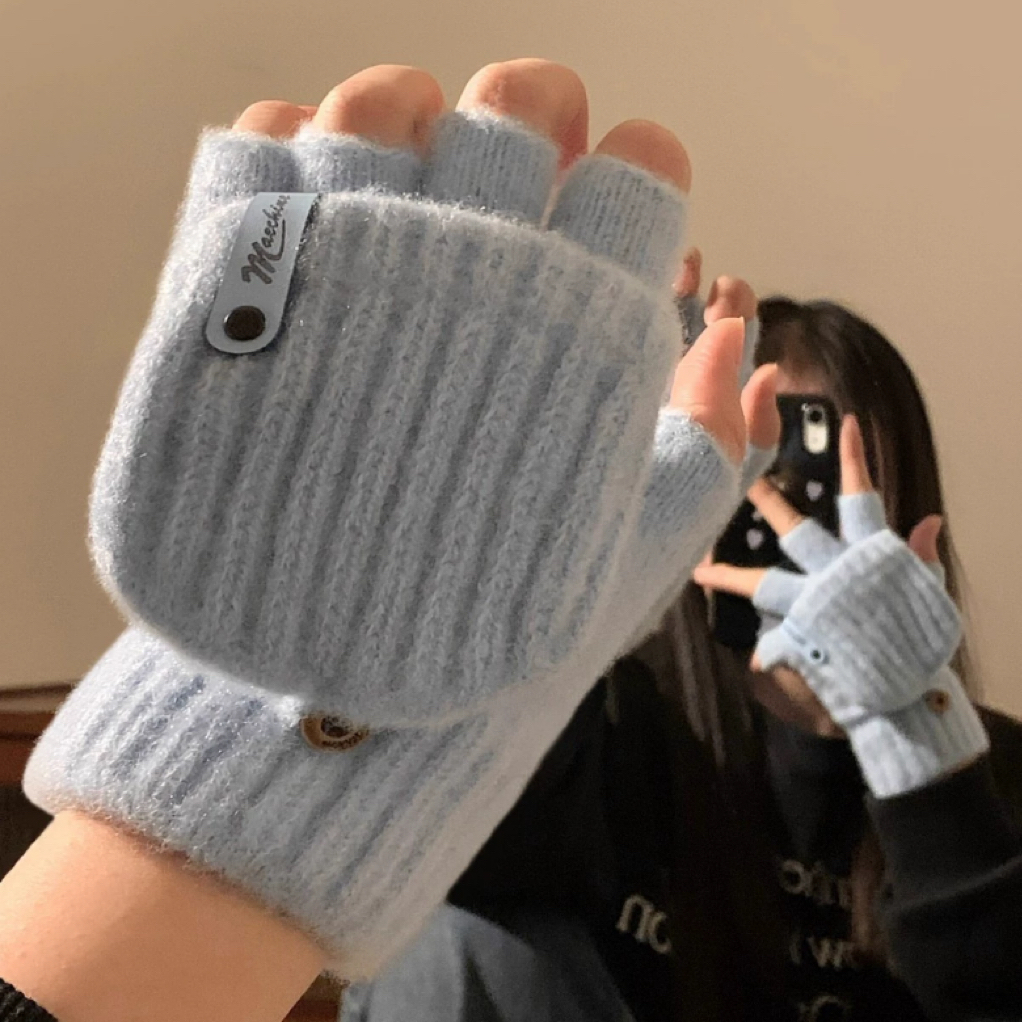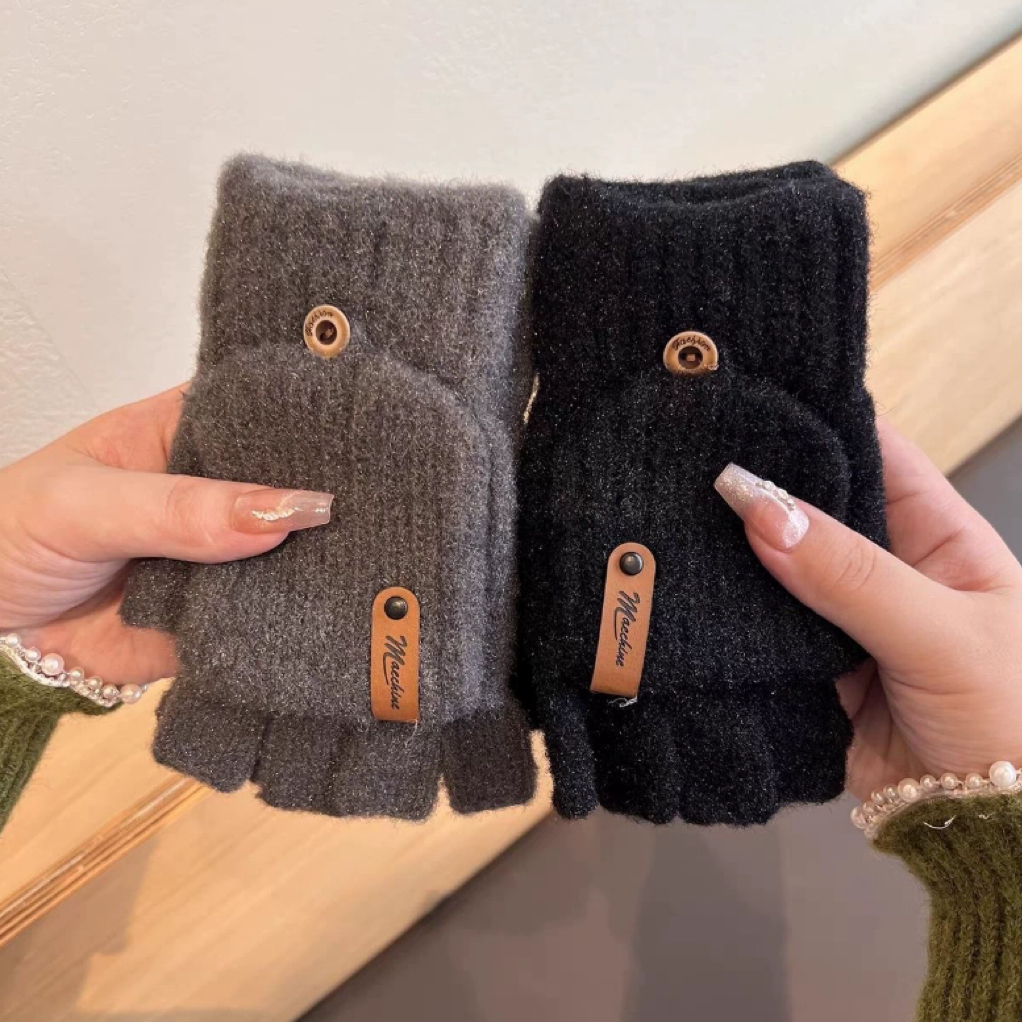 Tất tay len mịn giữ ấm găng tay mùa đông nắp cúc màu trơn xinh xắn đi xe viết bài tiện lợi