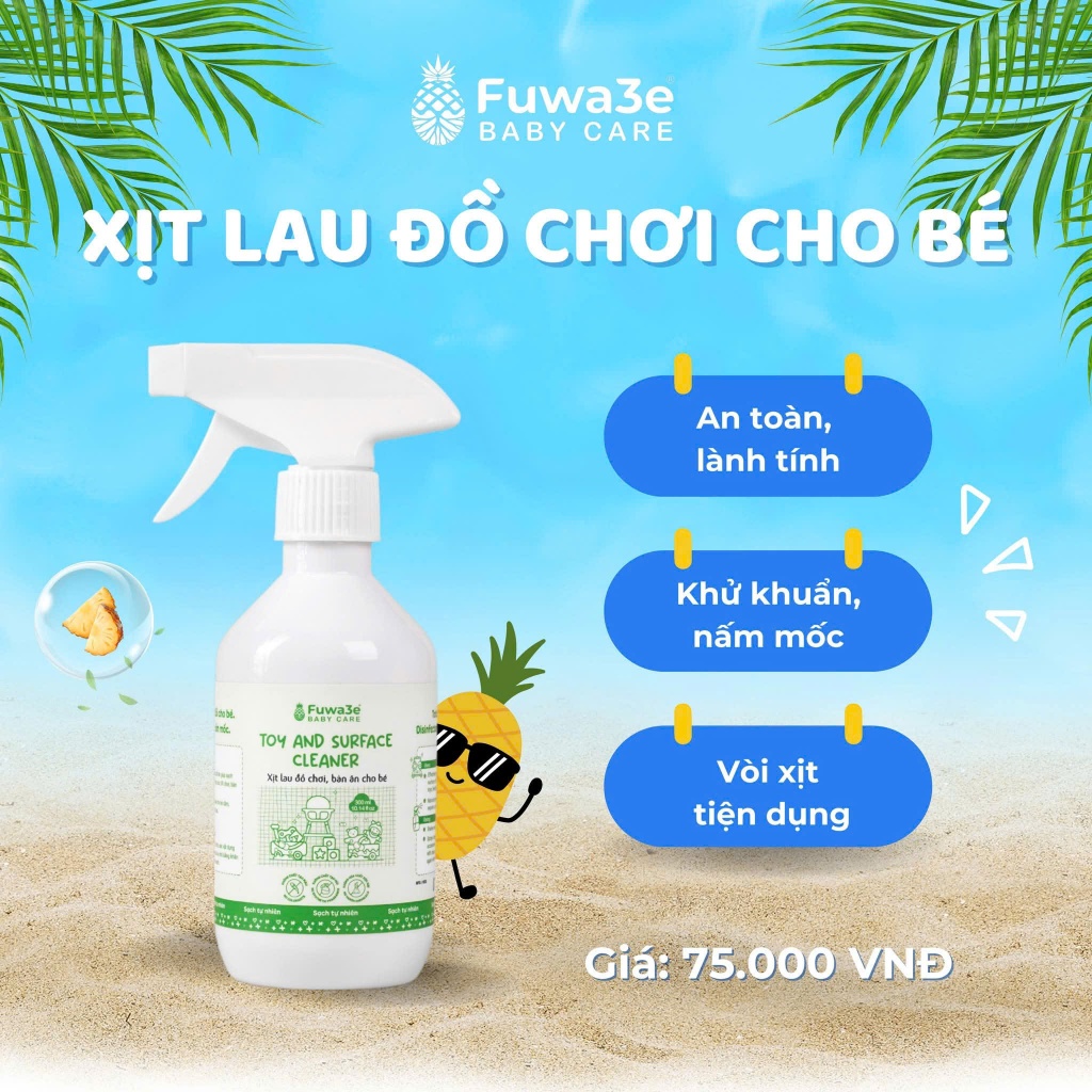 Xịt Lau Rửa Đồ Chơi Hữu Cơ Cho Bé Fuwa3e 300ml, 100% Enzyme Dứa Và Hữu Cơ,Lành Tính An Toàn