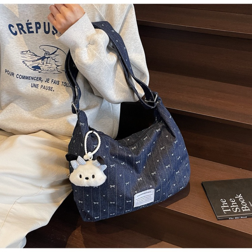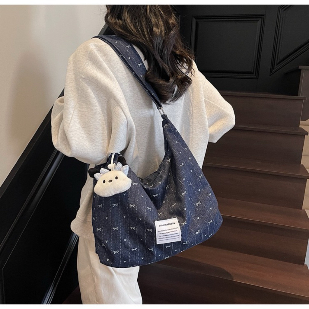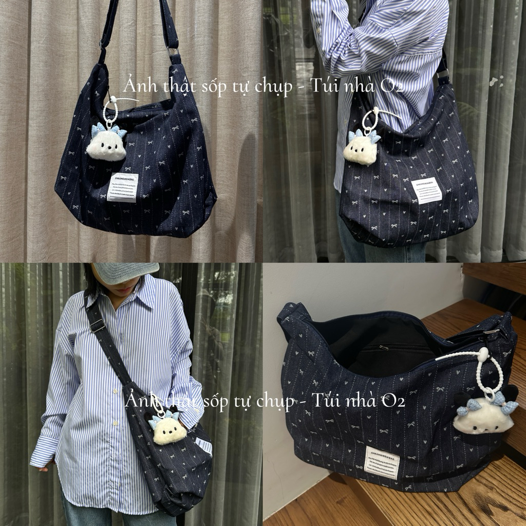 [KÈM CHARM] Túi đeo chéo vải denim vừa A4, lap14inch - TÚI NHÀ O2
