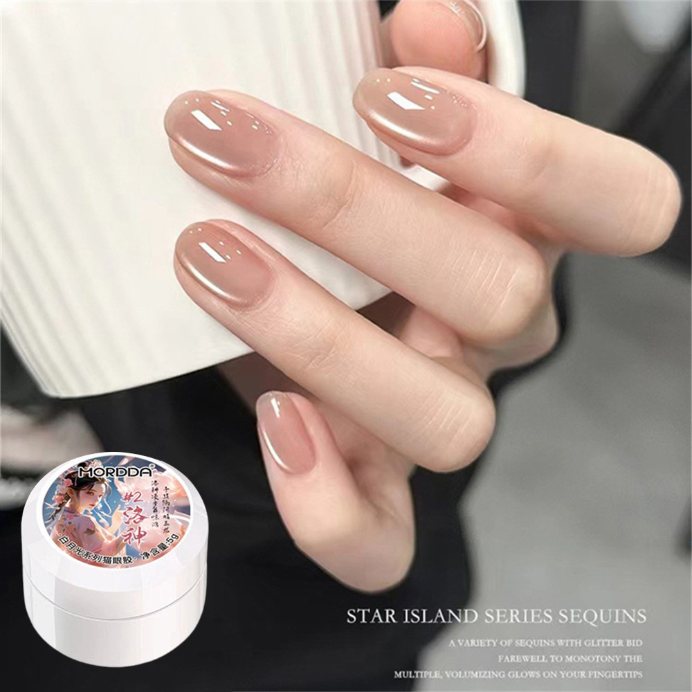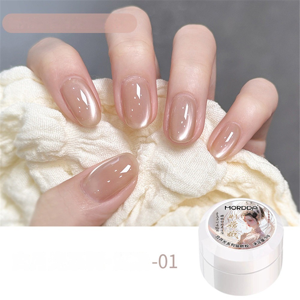 Sơn móng tay mắt mèo bằng sứ Mordda sáu màu trắng ánh trăng phong cách mới pha lê lấp lánh bằng sứ màu trắng keo dán mắt mèo qusl