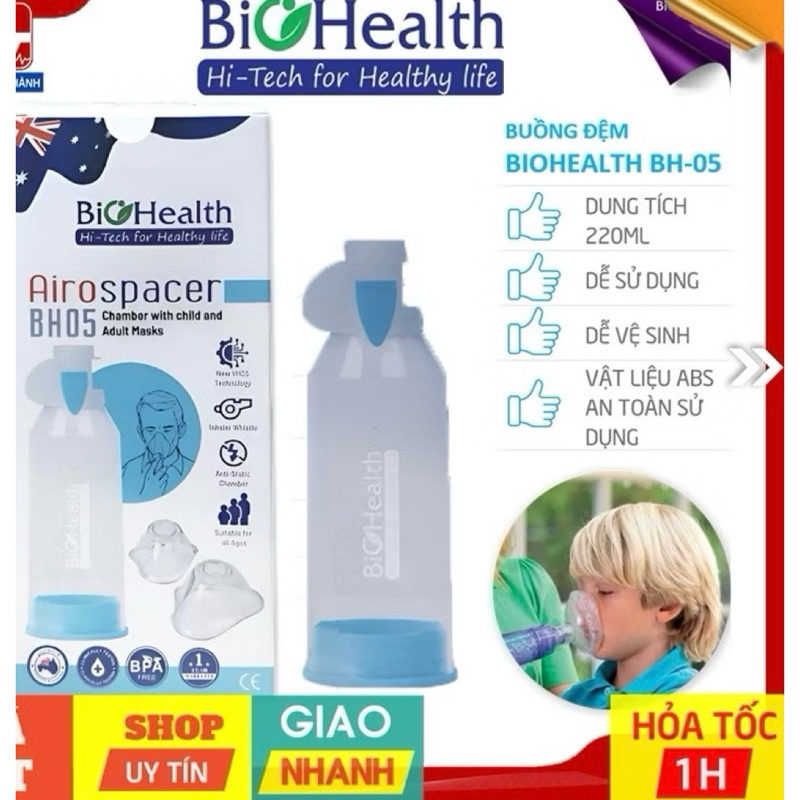 Buồng đệm khí dung( Bình xịt hen) BioHealth. Dùng được cho cả người lớn và trẻ em