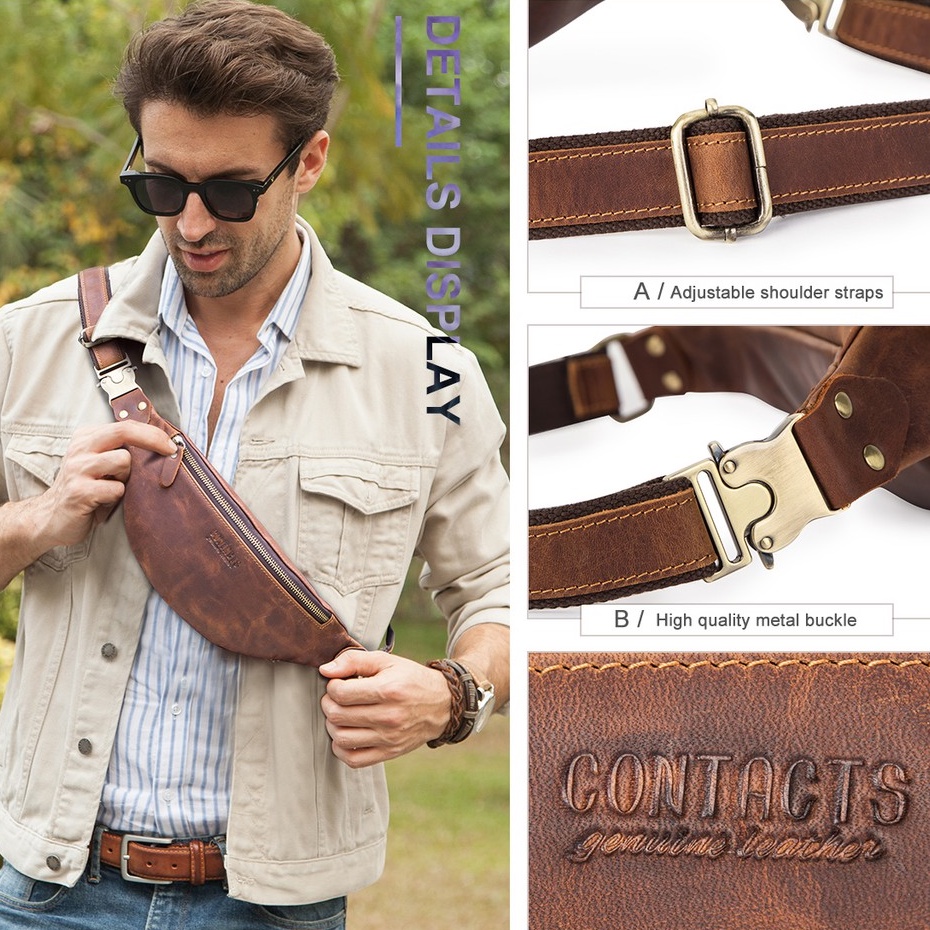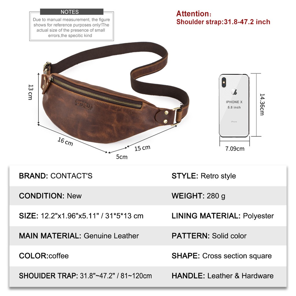 CONTACT'S Túi Da Bò Đeo Hông Đựng Điện Thoại Thời Trang Cho Nam