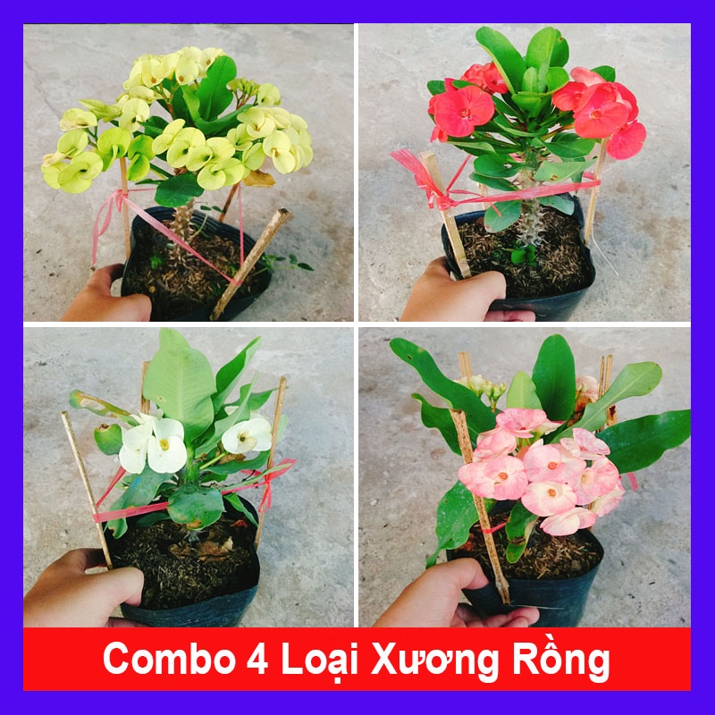 Combo 4 cây xương rồng bát tiên ( xương rồng vàng + xương rồng đỏ + xương rồng trắng + rồng hồng )
