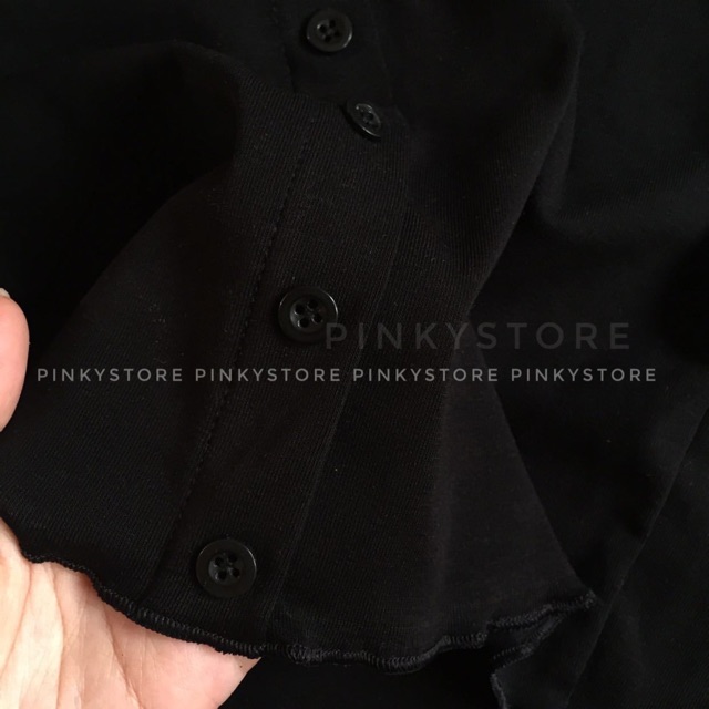 (Sale số lượng cuối) Áo croptop đen cúc dọc PINKYSTORE