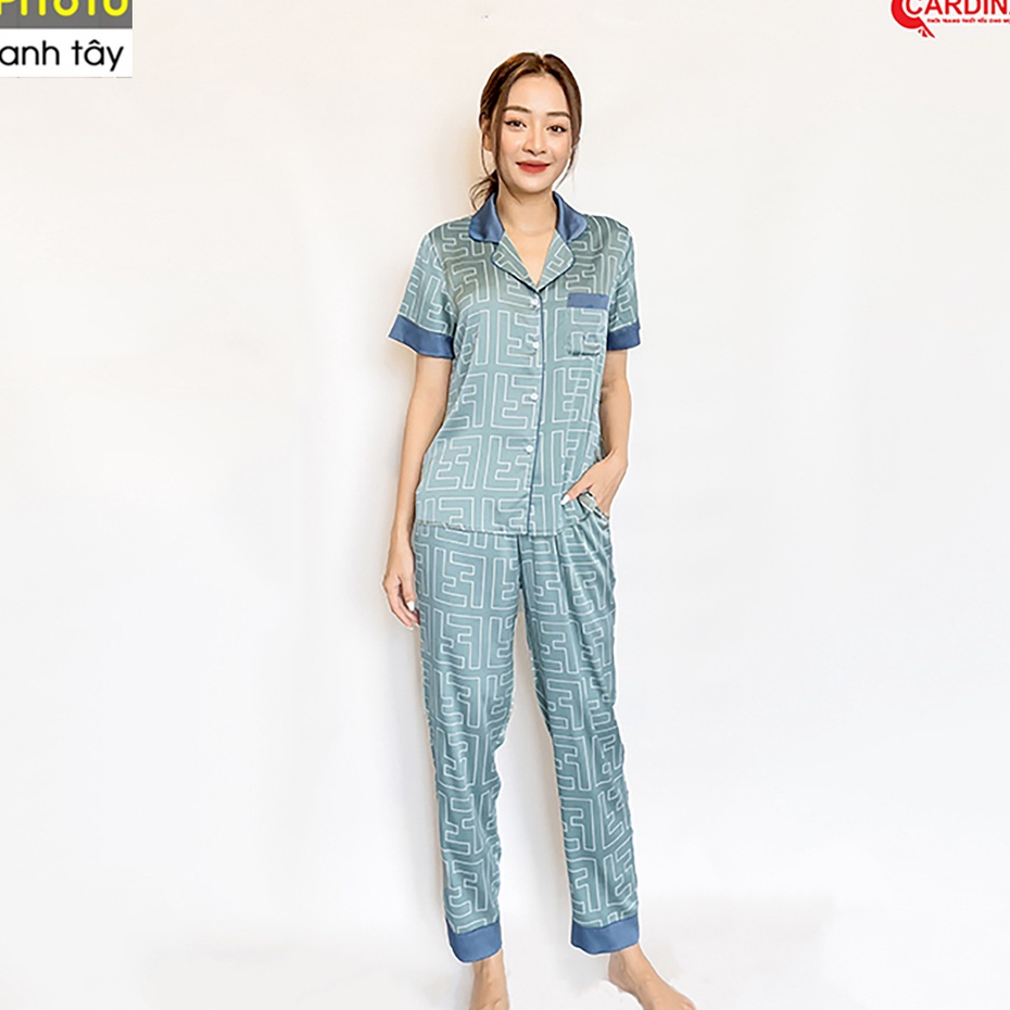Đồ bộ pyjama mùa hè chính hãng CARDINA cao cấp chất lụa satin Nhật quần dài áo cộc tay họa tiết xinh xắn trẻ trung