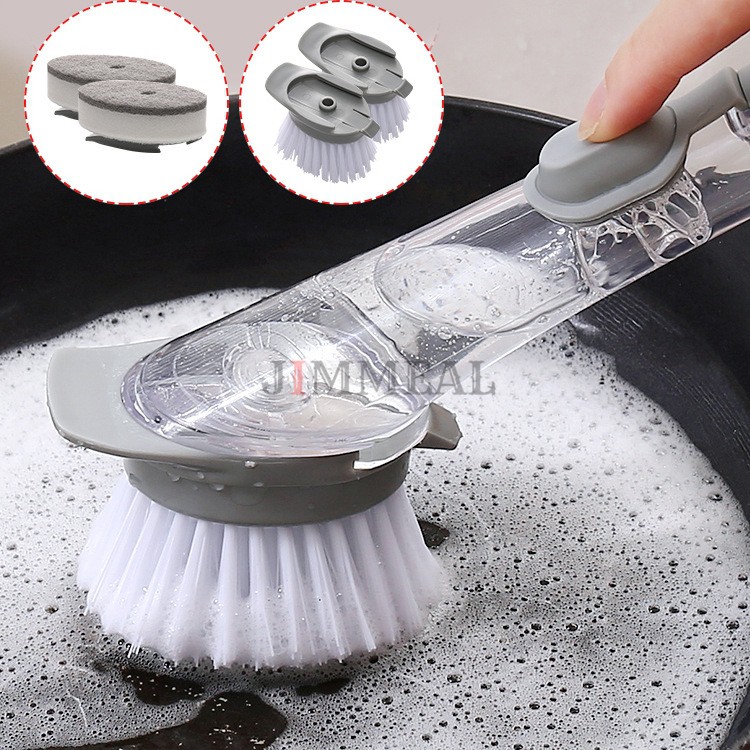 Bàn Chải Cọ Rửa Chén Bát Xoong Nồi, Cây Cọ Chà Rửa Nồi Xoong 2in1 Có Chỗ Đựng Nước Rửa Chén