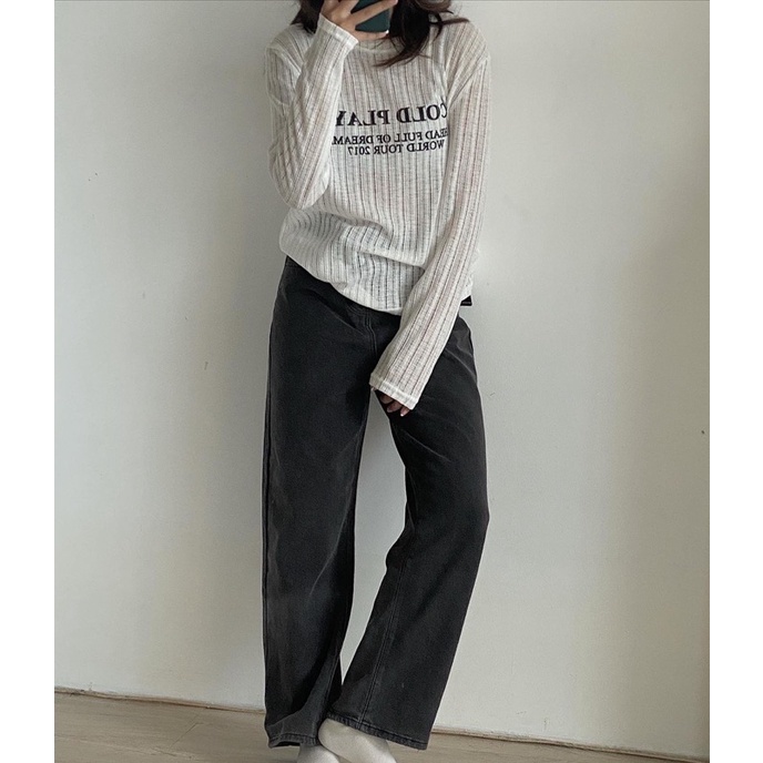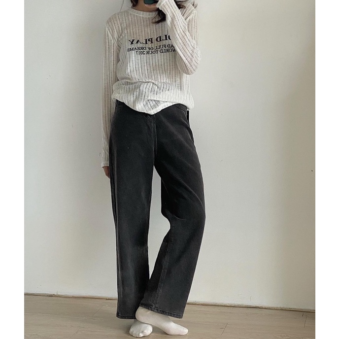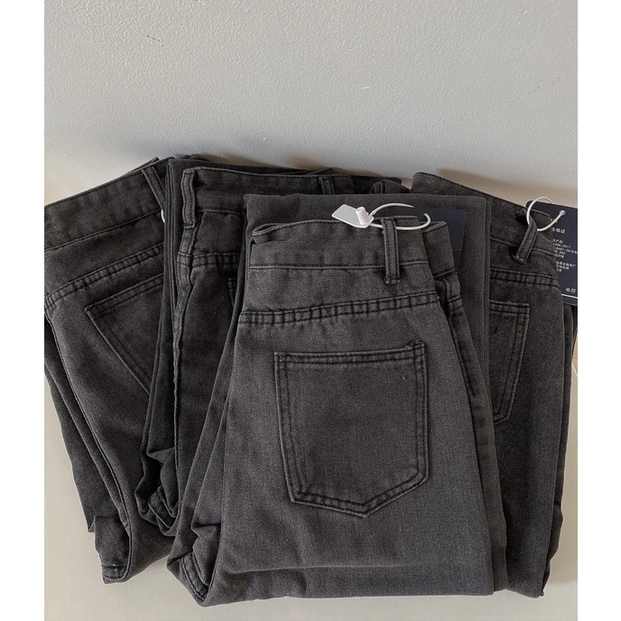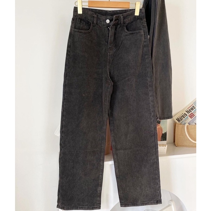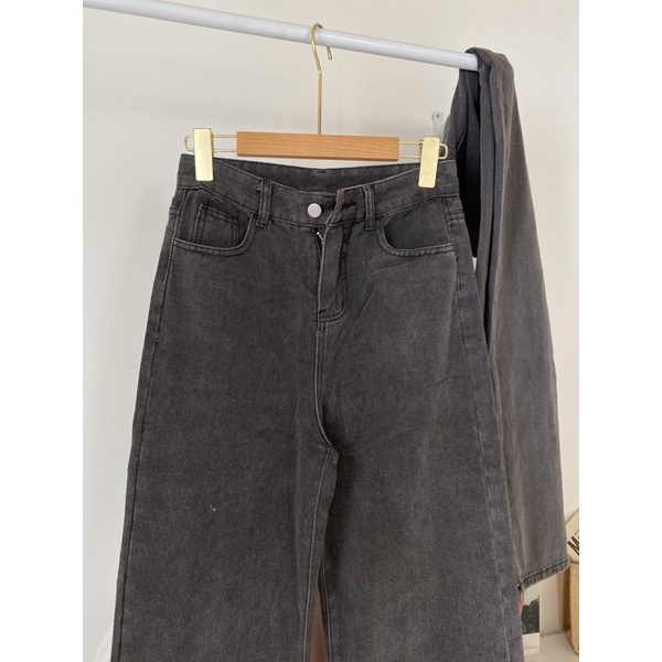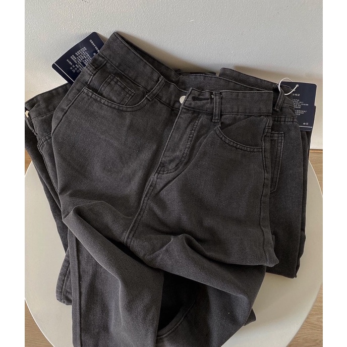 Quần Jean Ống Suông Đen Lông Chuột Lưng Cao