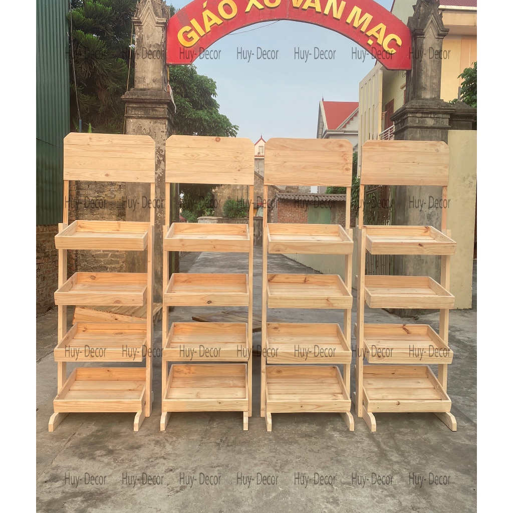 Kệ trưng bày sản phẩm 4 tầng , gỗ THÔNG - Kệ GỖ để SÁCH , HOA QUẢ , ĐỒ NHÀ BẾP - SIÊU THỊ