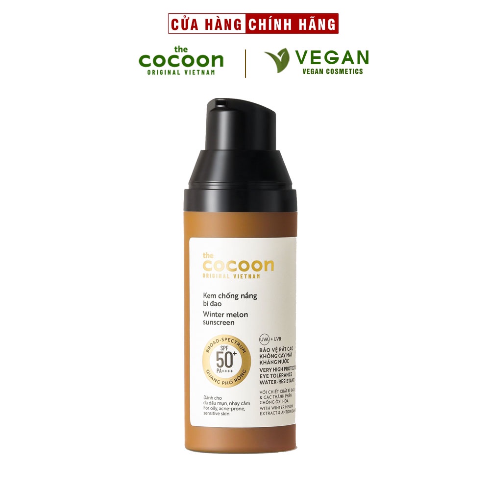 Kem chống nắng bí đao quang phổ rộng, bảo vệ rất cao SPF 50 +, PA ++++ Cocoon 50ml thuần chay