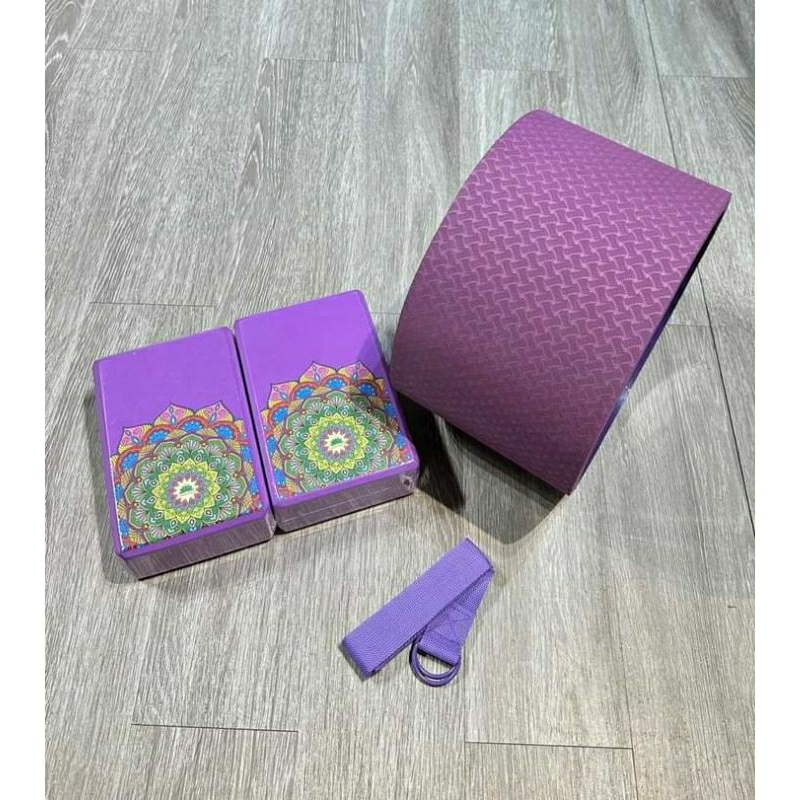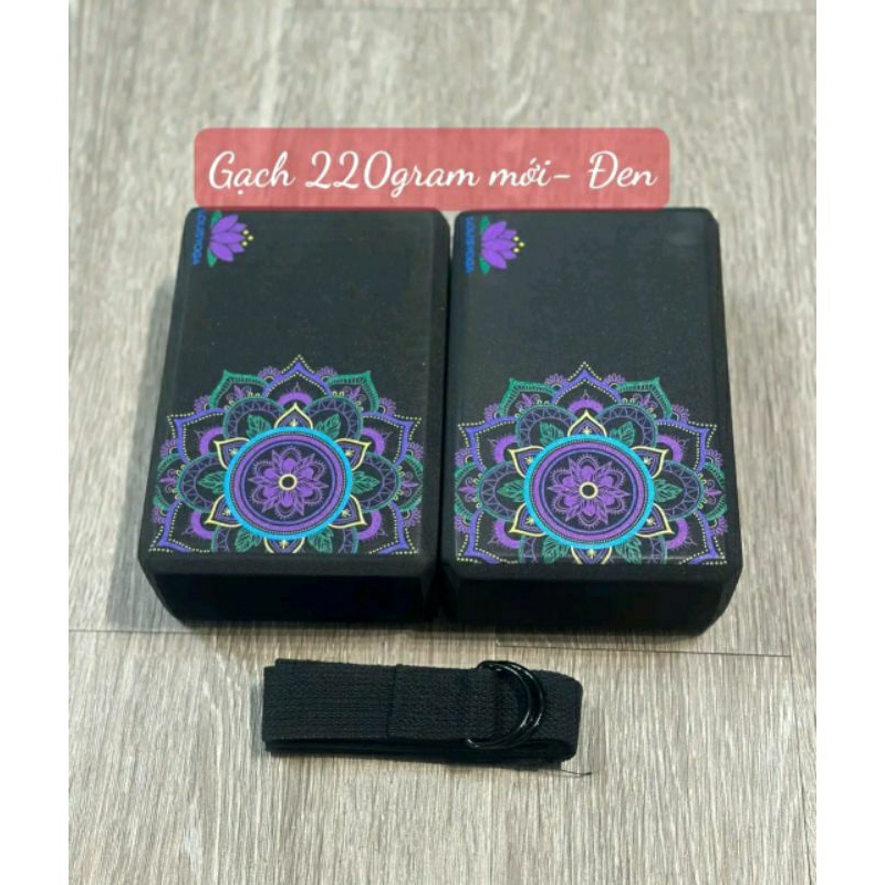 Combo Vòng Tập Yoga bản TO 20cm, 2 gạch in hoa văn mandala hãng LOUIS YOGA , 1 dây cotton 1m8 hỗ trợ tập Yoga louis