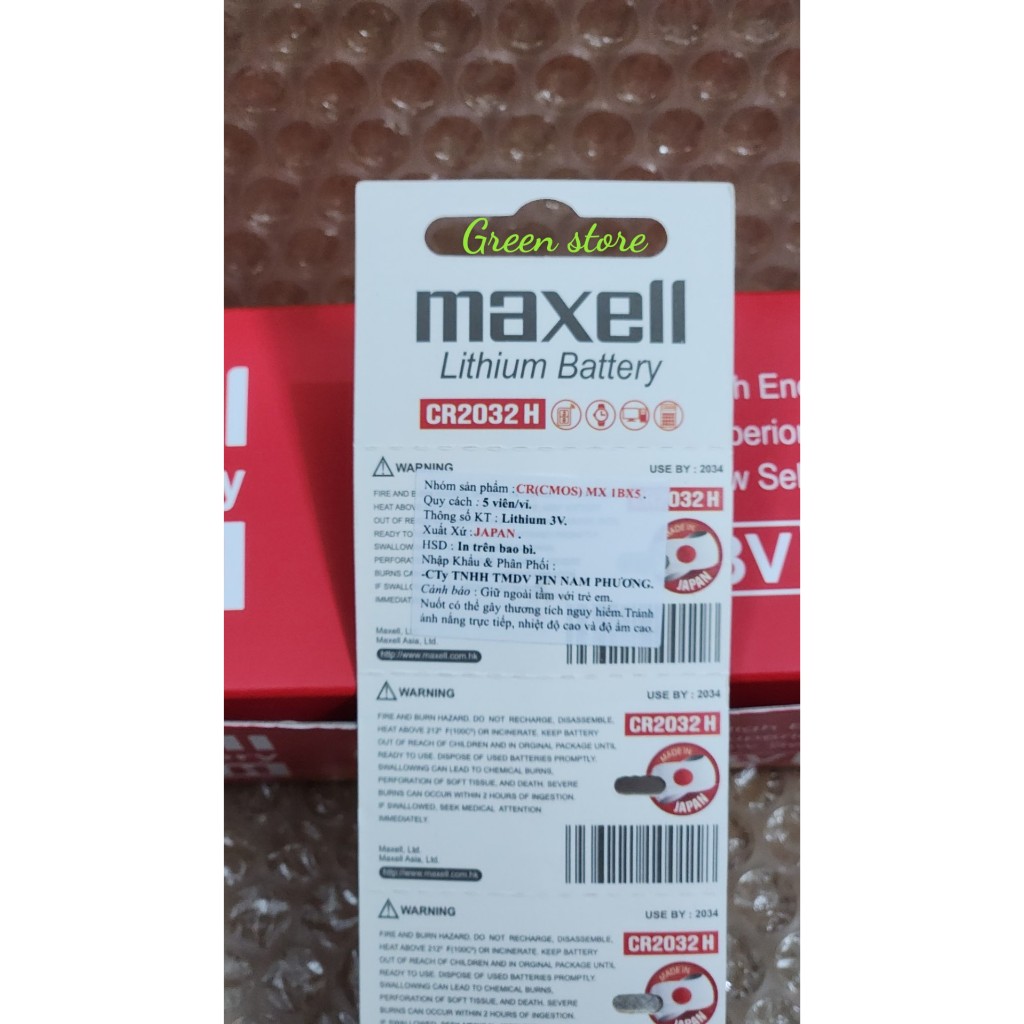 Vỉ 5 viên pin Cmos CR2032 /CR 2032 Lithium Maxell 3V dùng cho smartkey xe máy, ô tô - Made In Japan