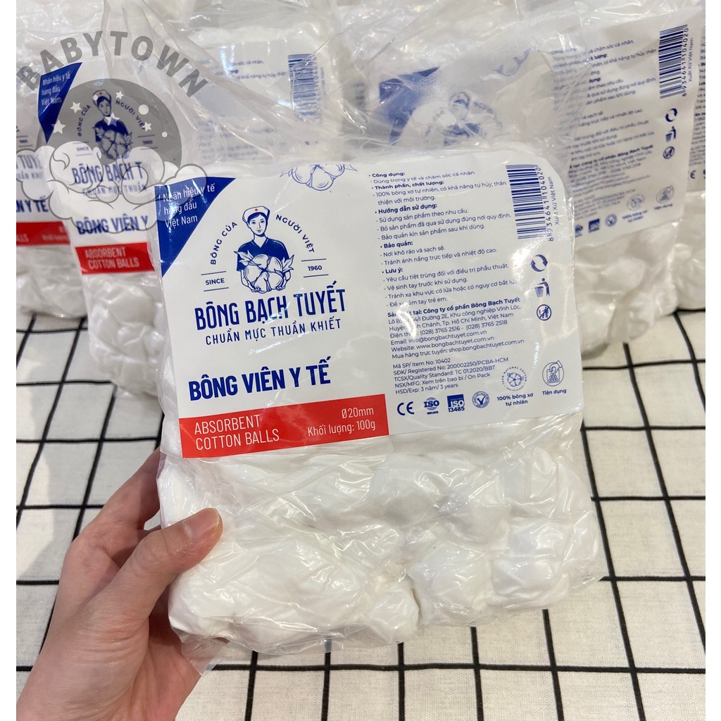 Bông viên đa năng Bạch Tuyết 100g - Bông gòn viên Bạch Tuyết